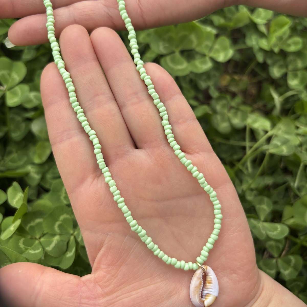 light green bead with a pendant