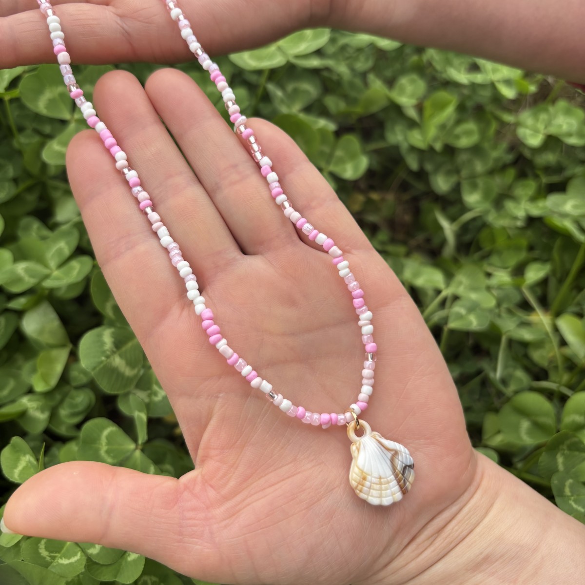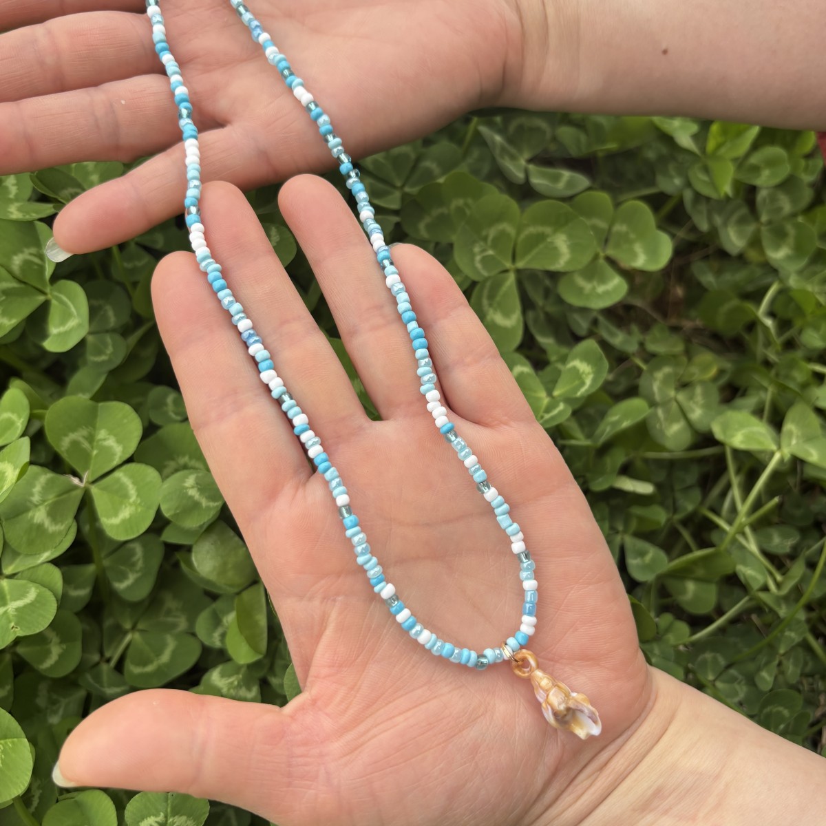 white bead necklace with pendant