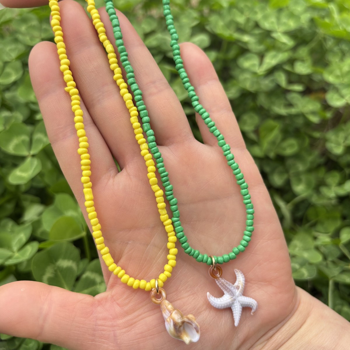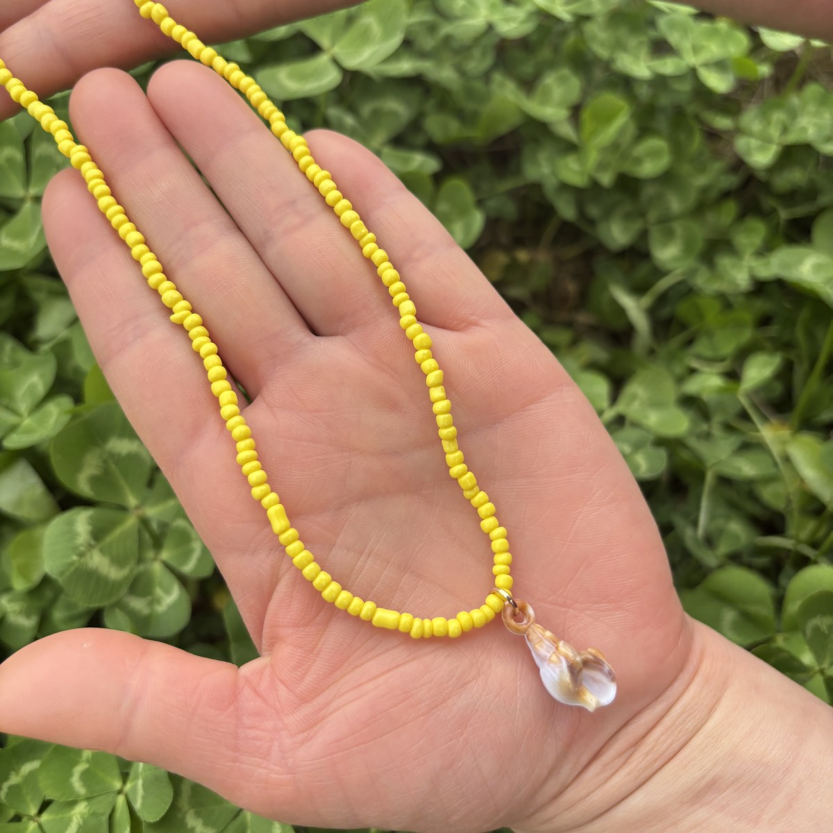 yellow bead necklace with pendant