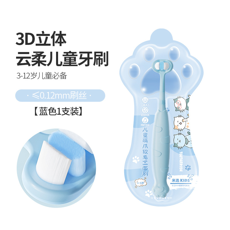 cat's paw three-sided toothbrush-blue
