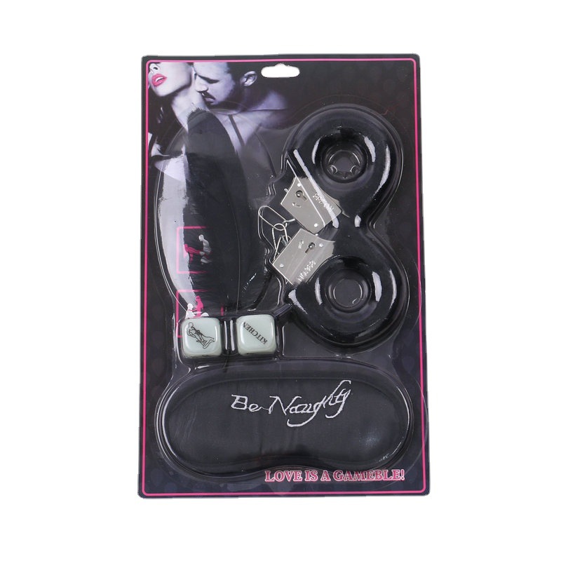 Product Name: Direct Factory Sale Adult Adult Four-piece Furry Handcuffs, Eye Mask, Dice, Feather Combo for Couple's Flirtation