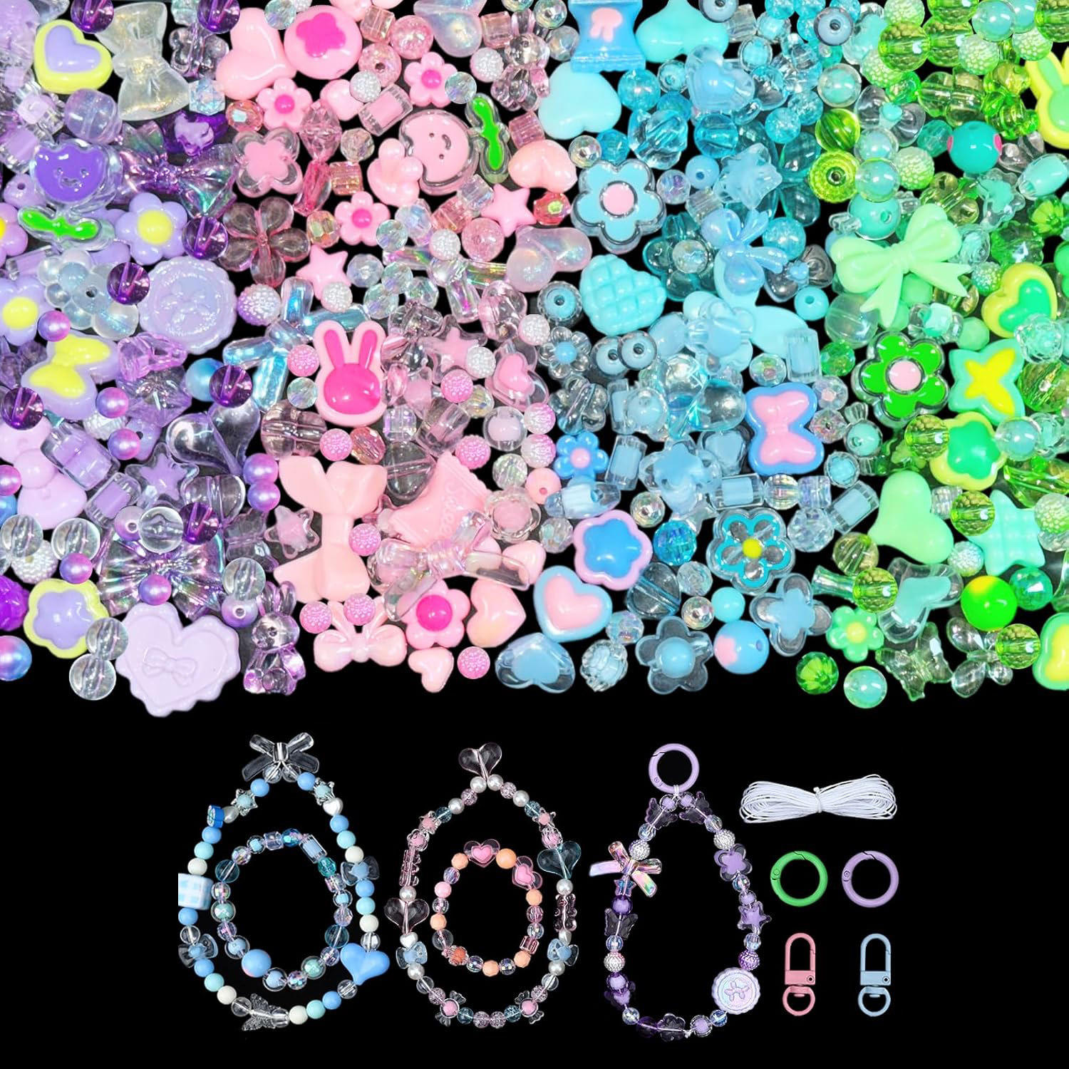 cross-border diy acrylic beads random beads bracelet making bowknot sugar heart-shaped gummy bear cute jewelry making