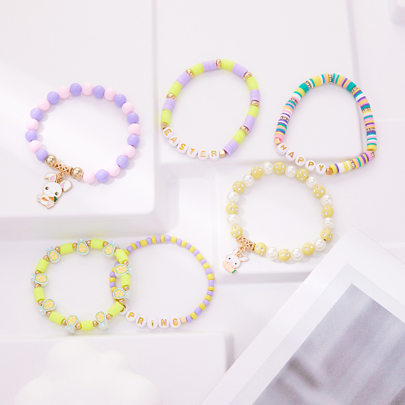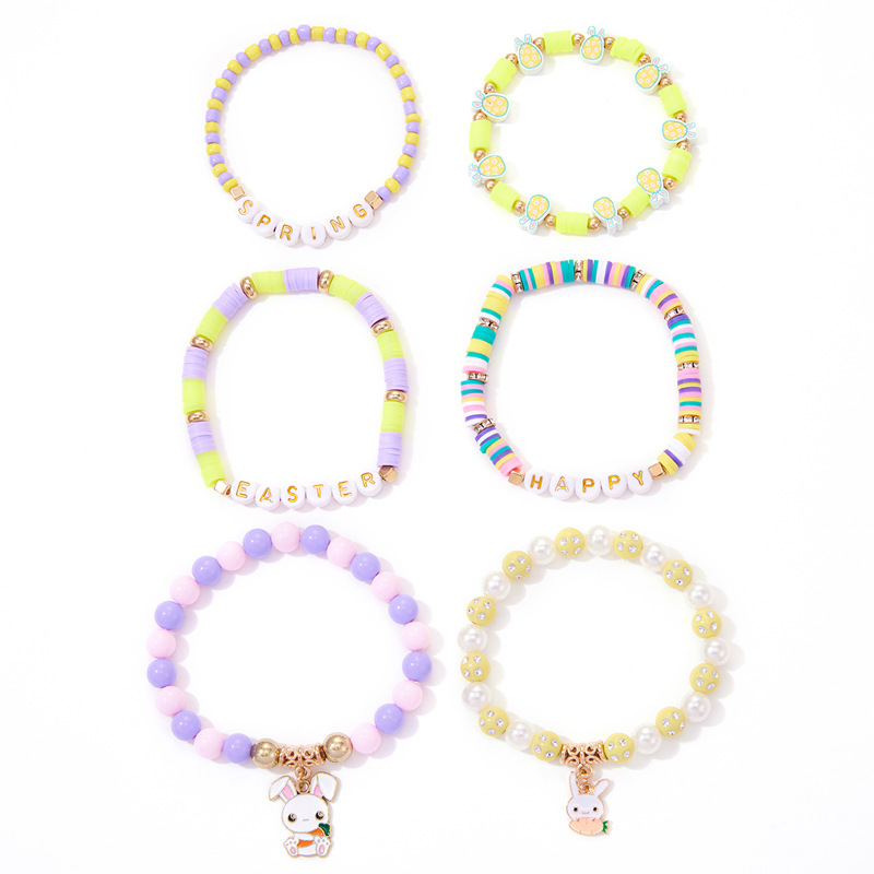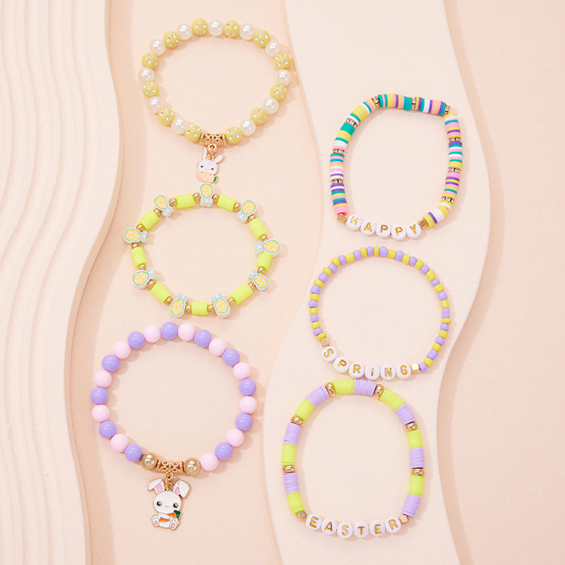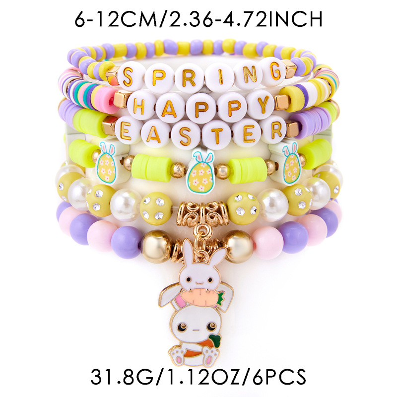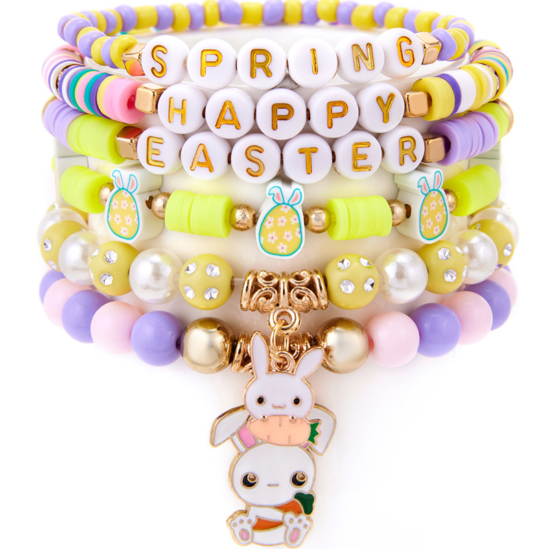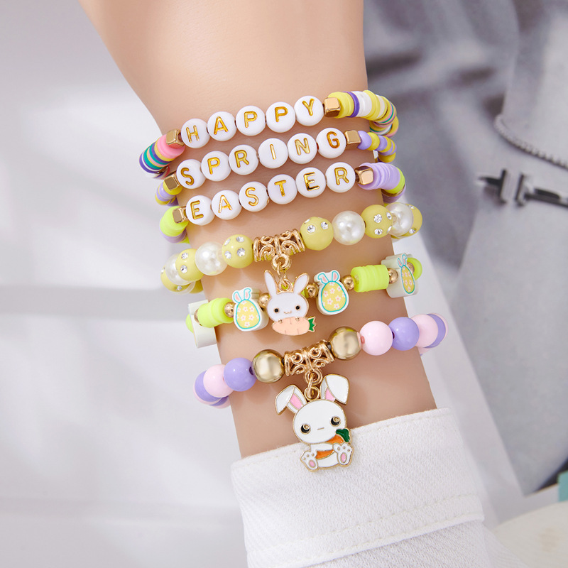 europe and america cross border easter new gold letter rabbit pendant bead bohemian style 6-piece bracelet set