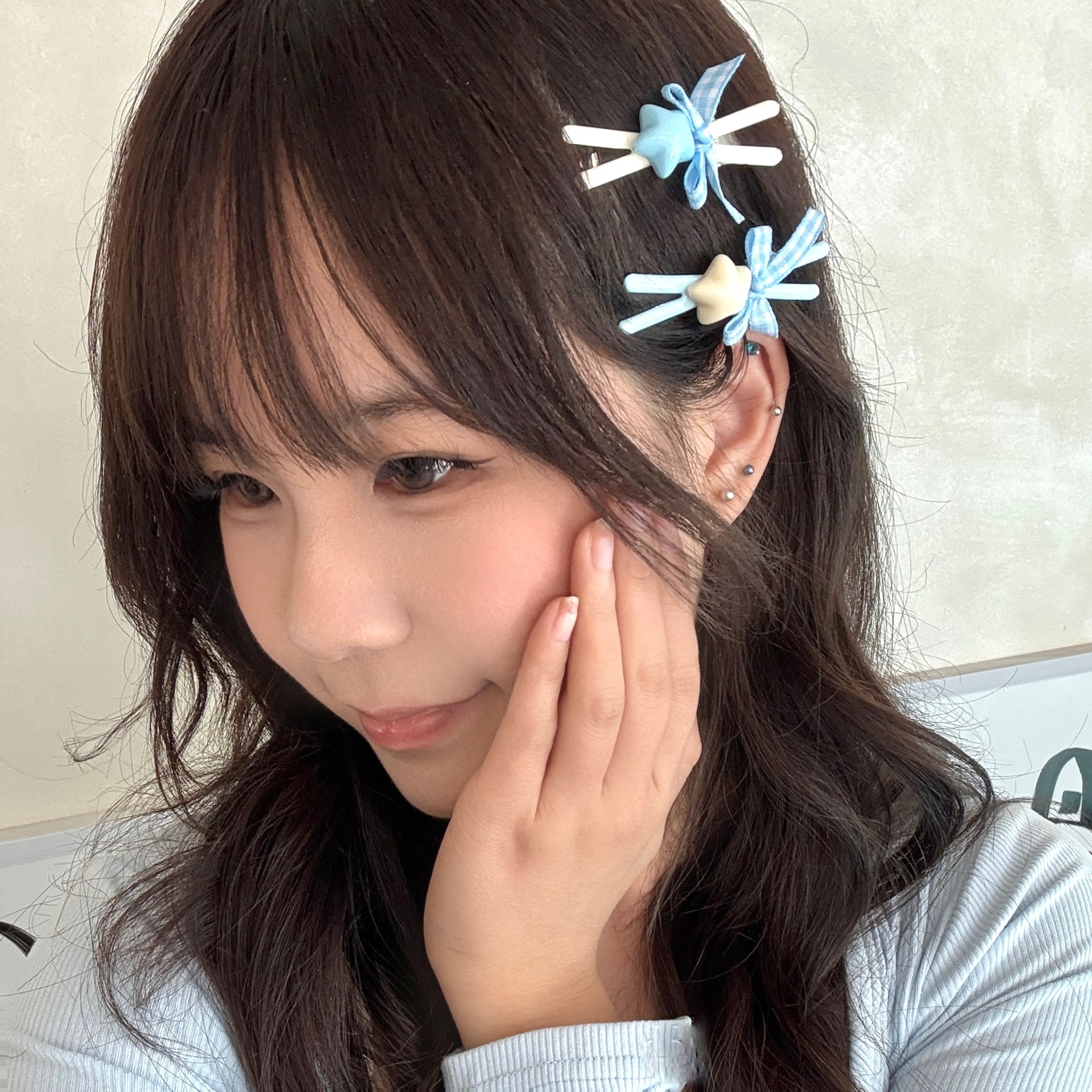 6# blue xingx bow barrettes