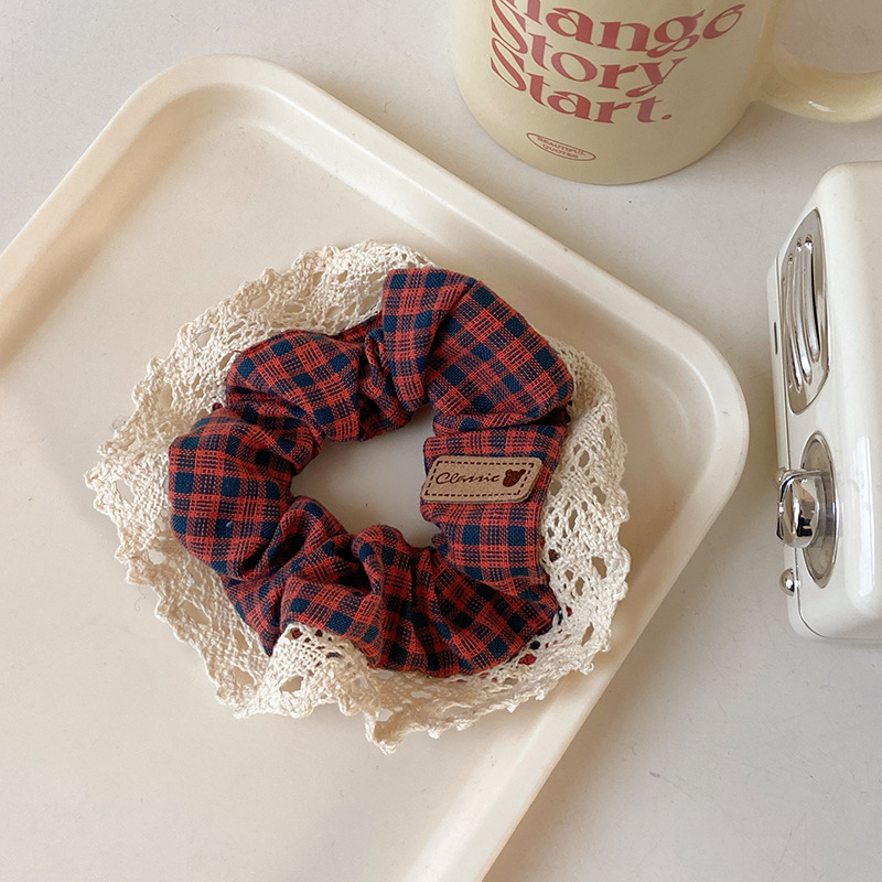 33# red and black plaid lace hair ring