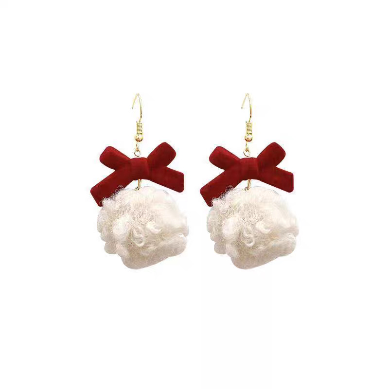 hair ball bow stud earrings-silver needle