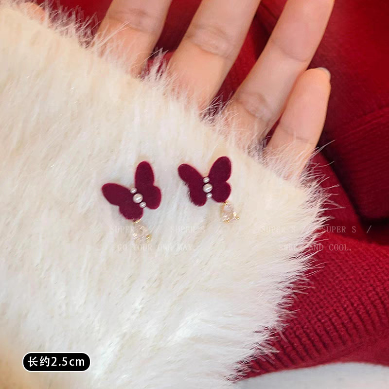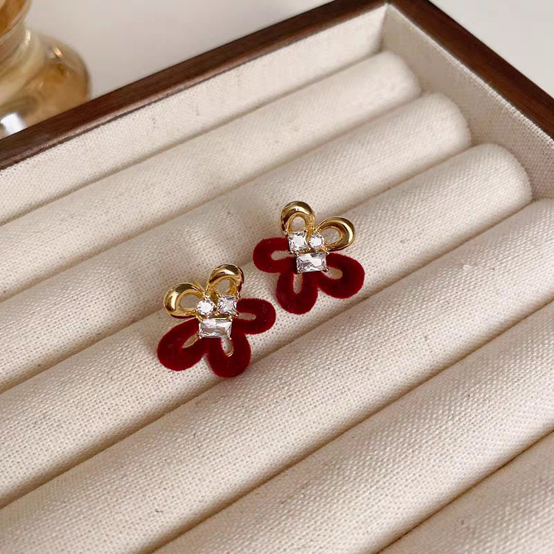 zircon red flocking butterfly studs