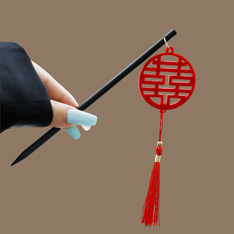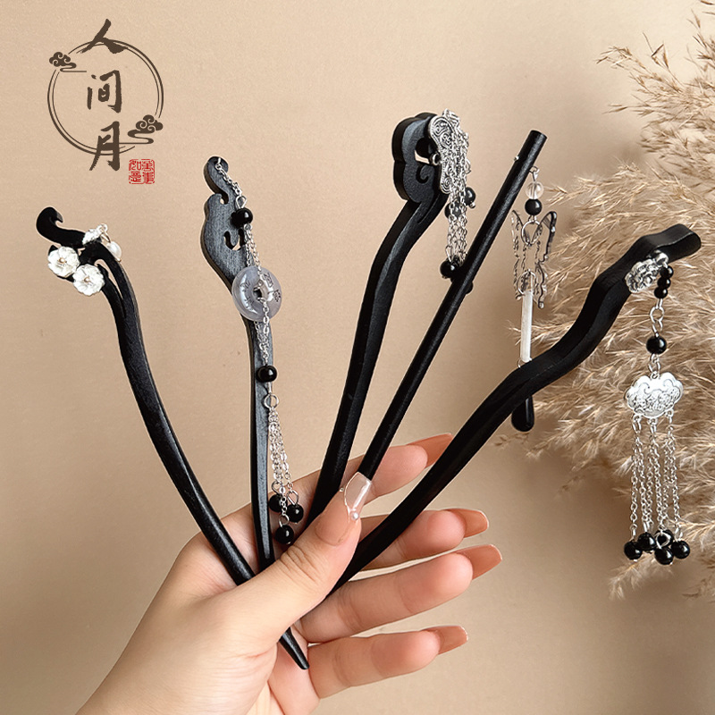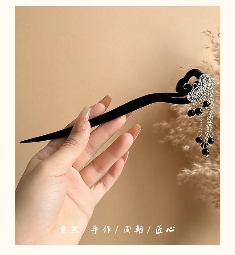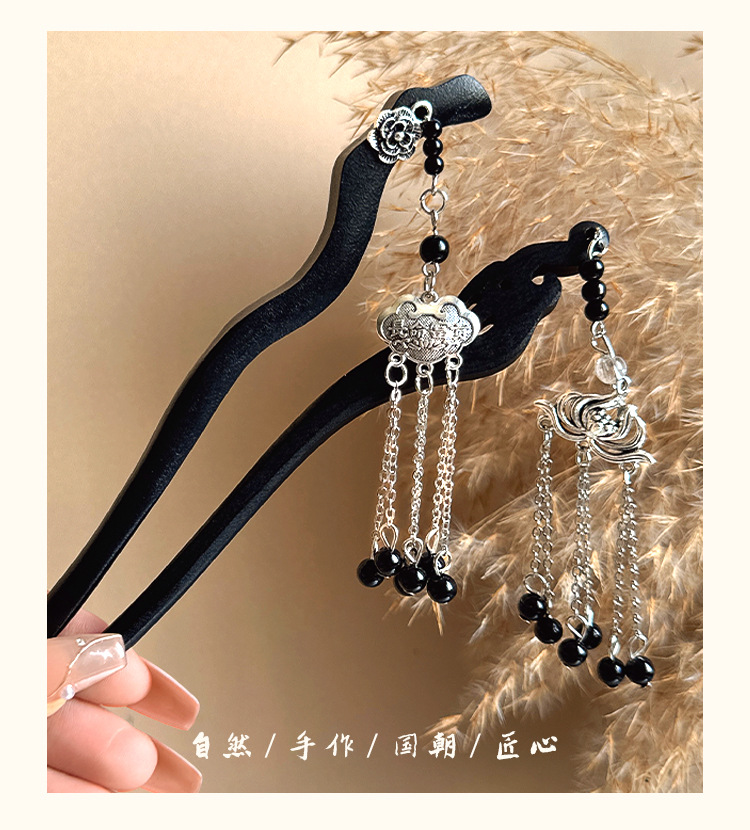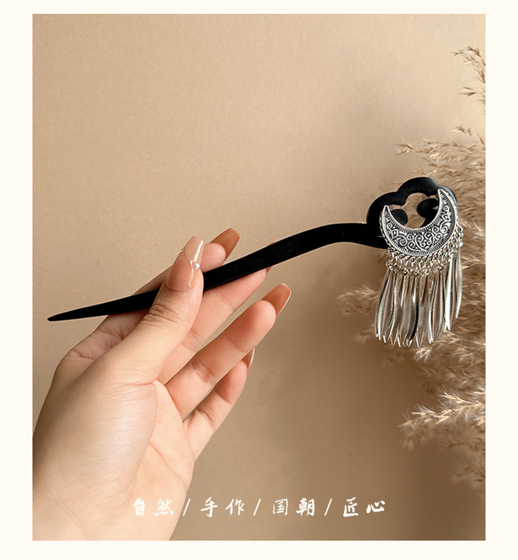 silver round double hairpins tassel