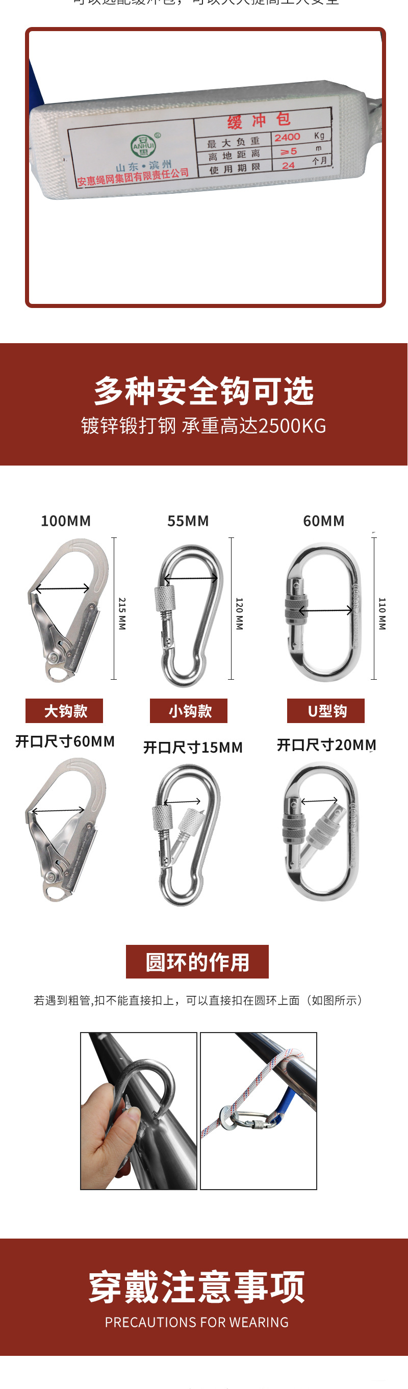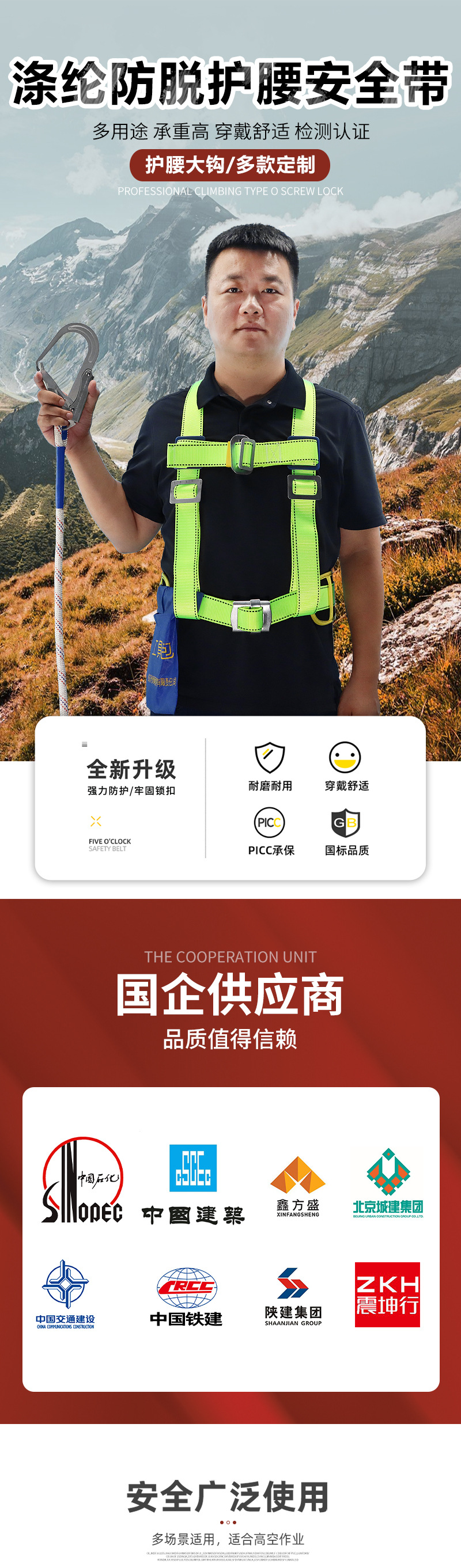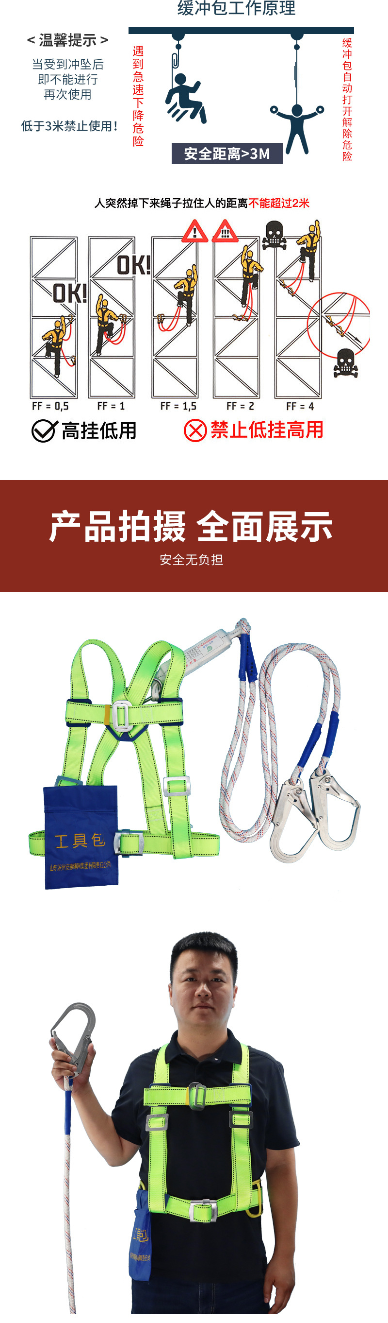 polyester anti-release and waist support single hook 2m (ft006)