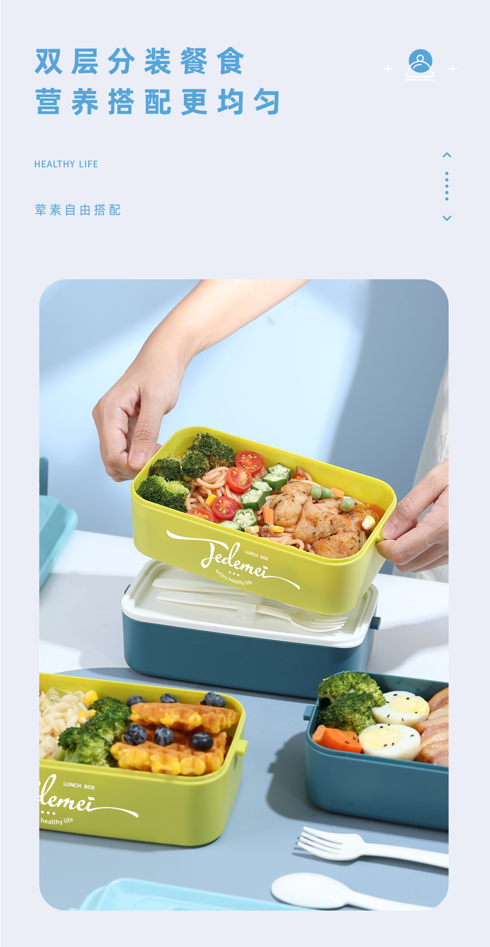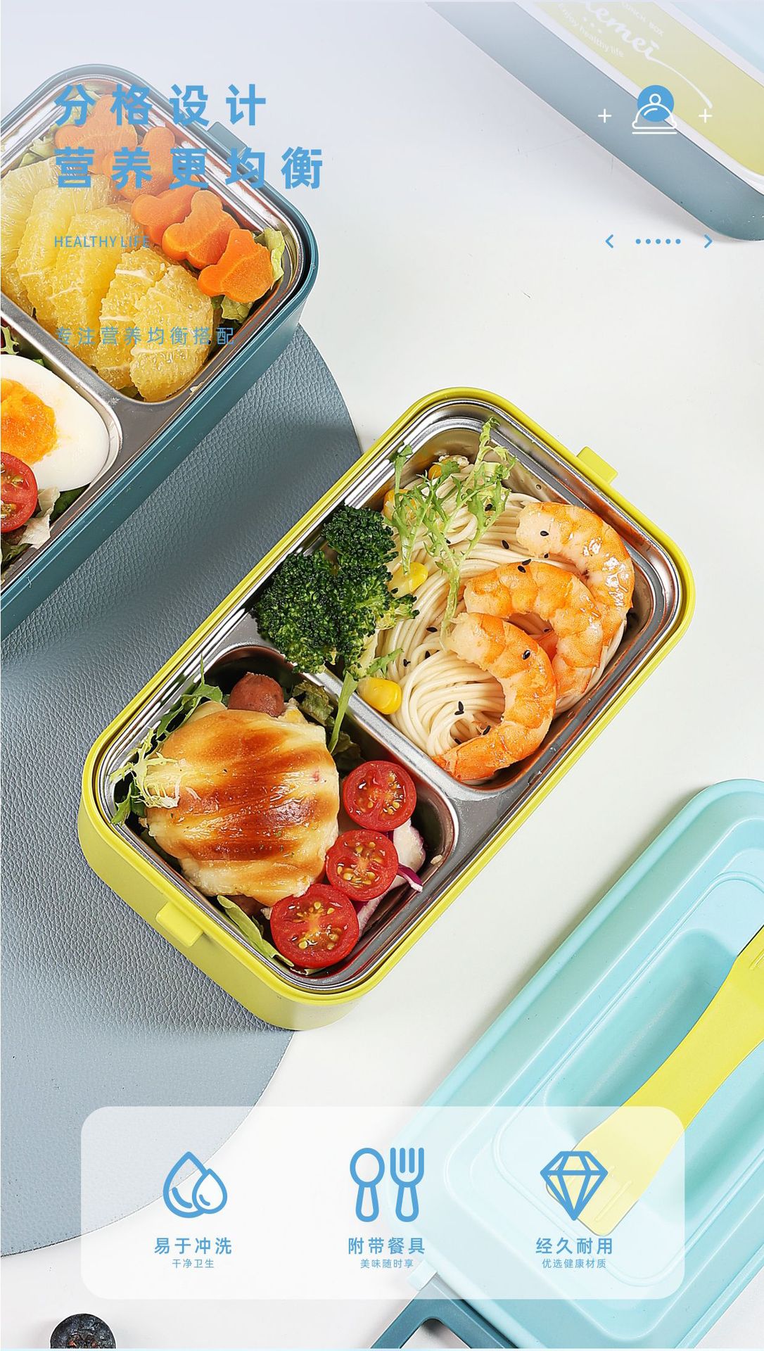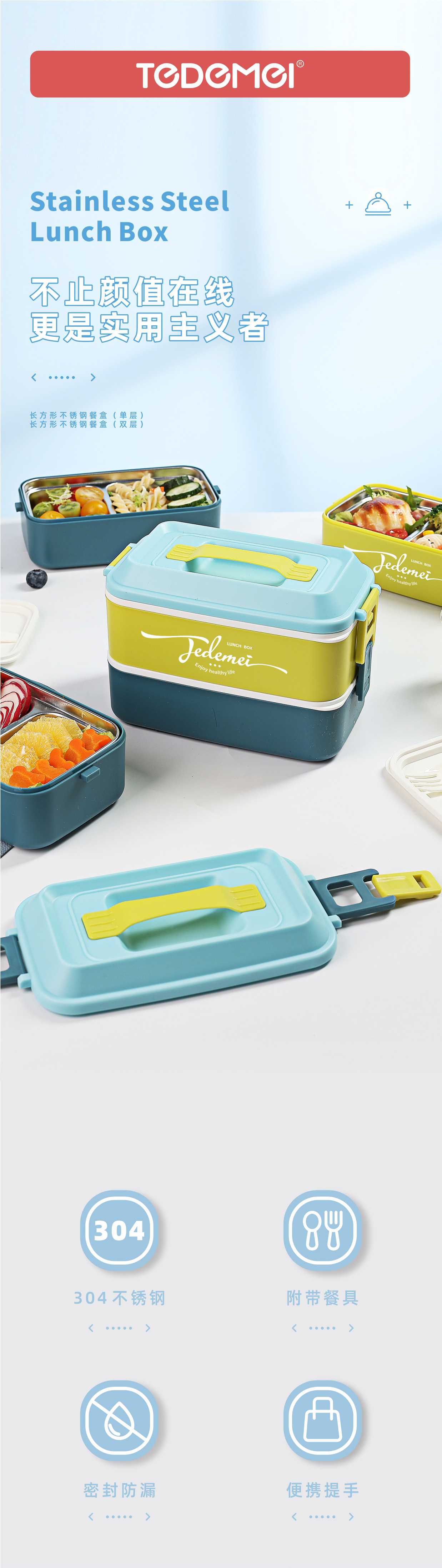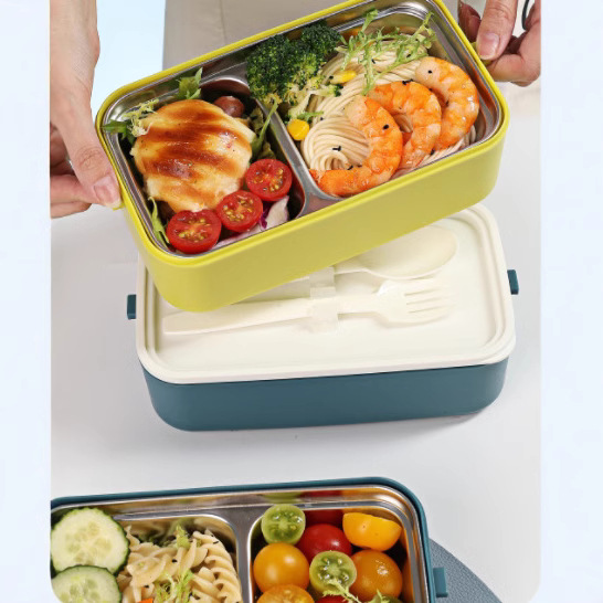 hz269# convenient rectangular handle-type single-layer double-layer stainless steel plastic lunch box with tableware lunch box stool