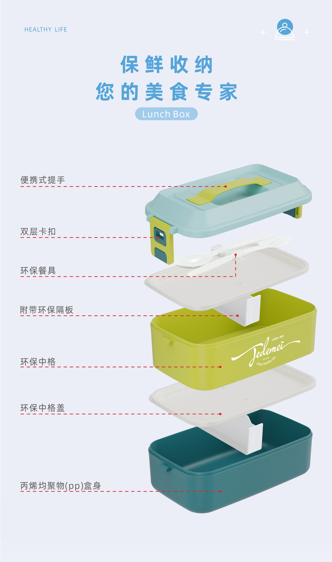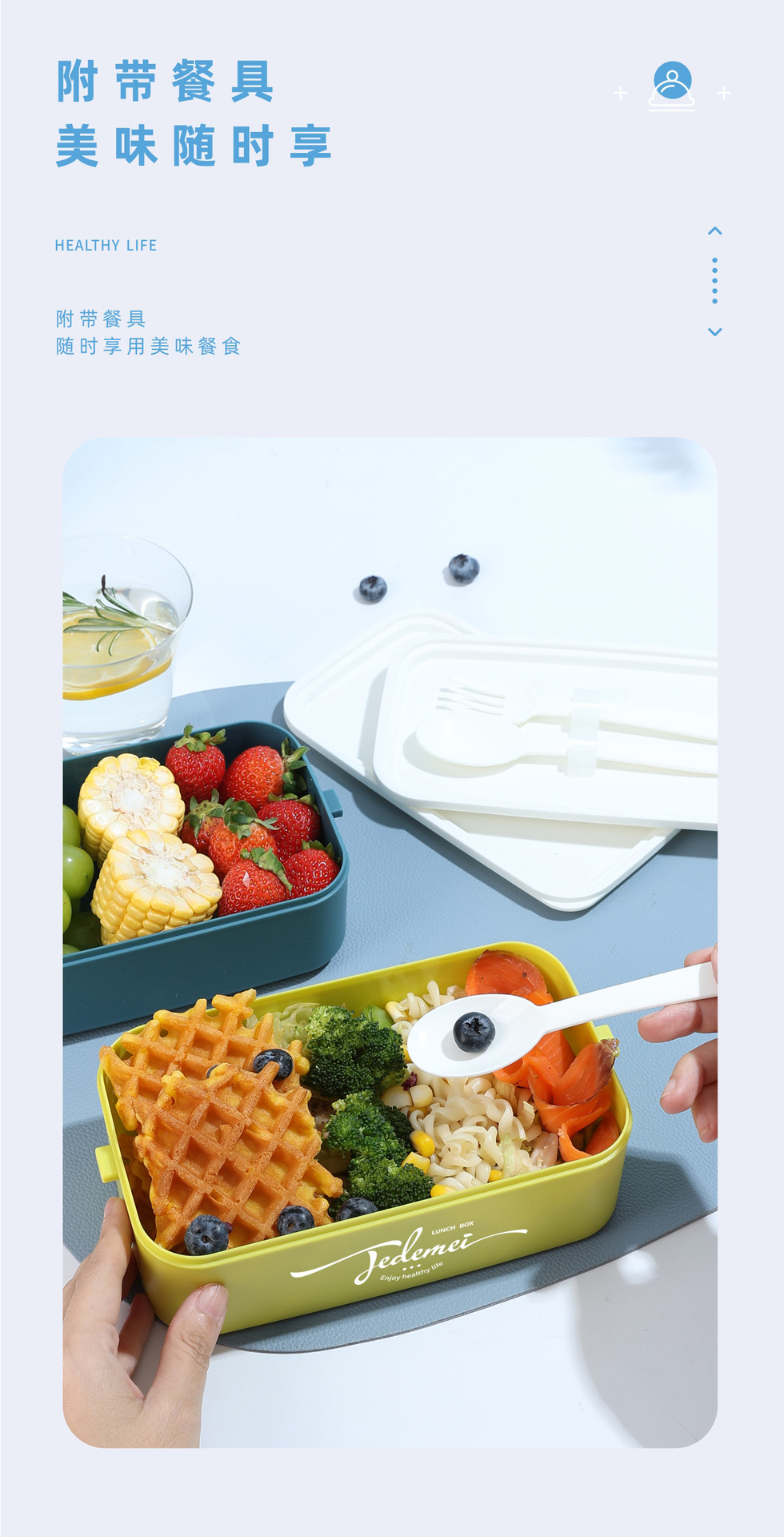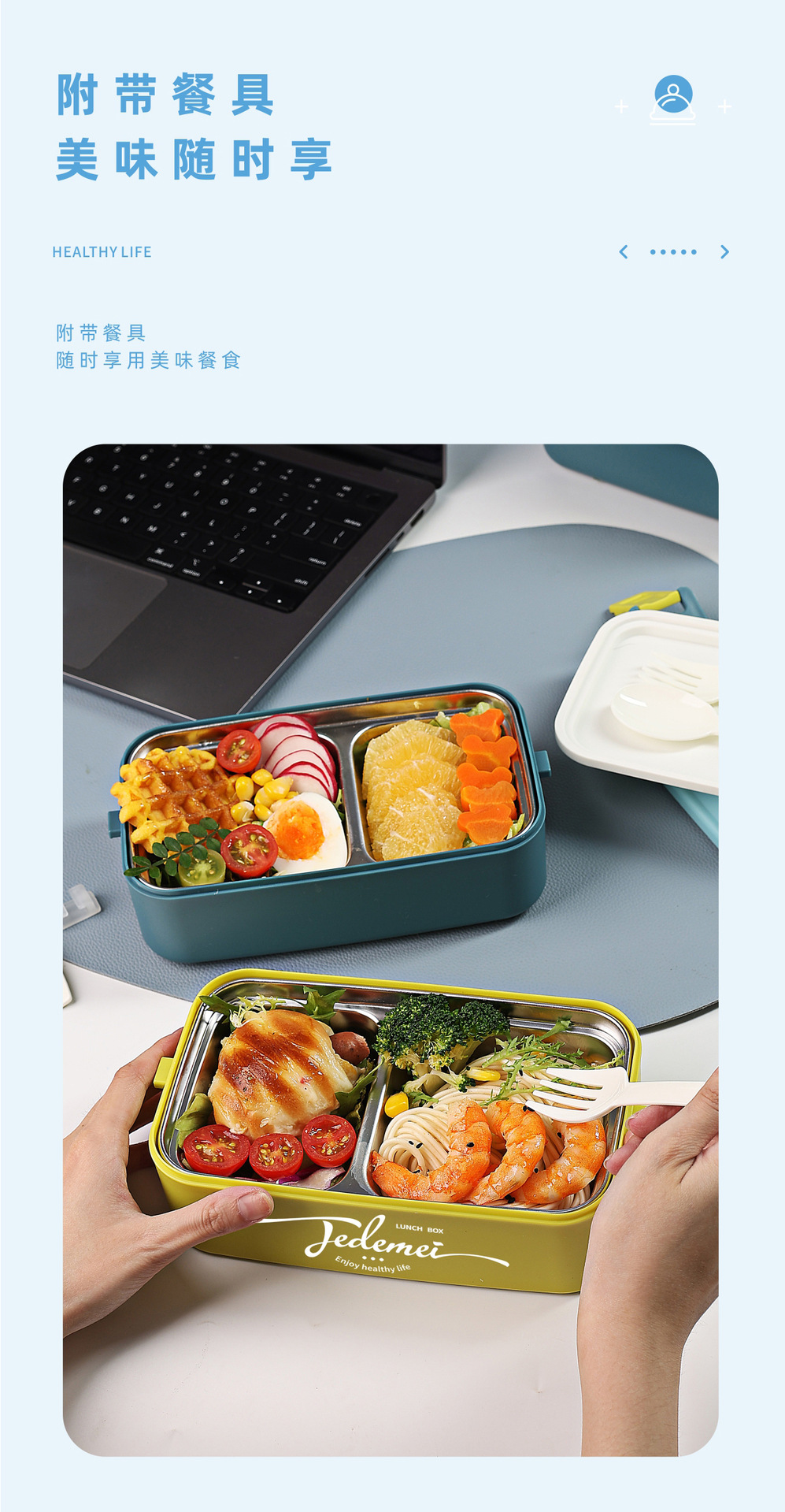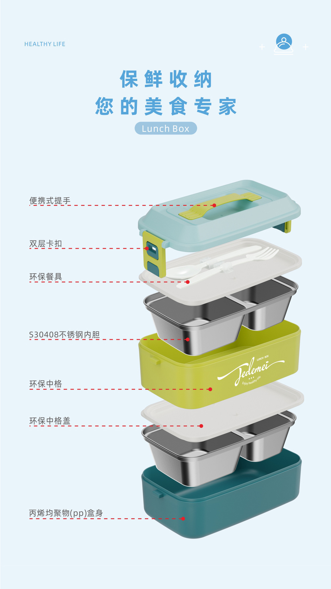 hz269# convenient rectangular handle-type single-layer double-layer stainless steel plastic lunch box with tableware lunch box stool