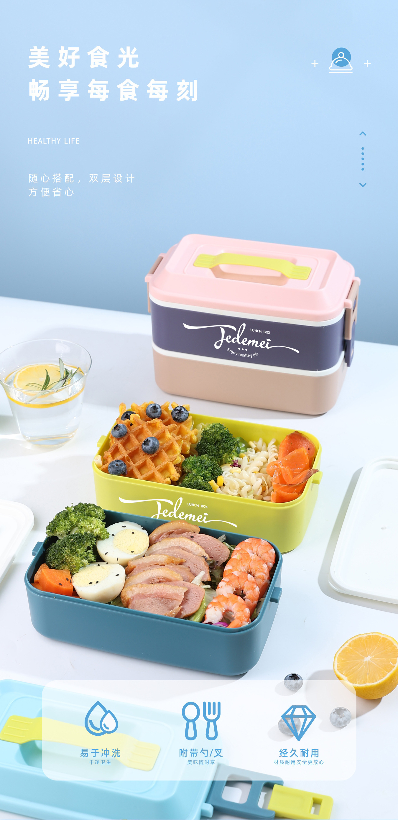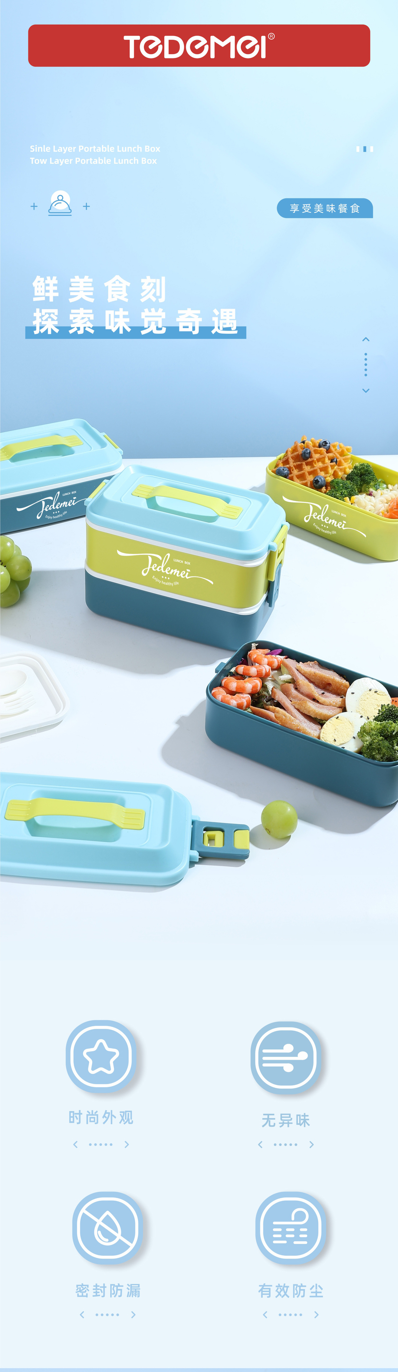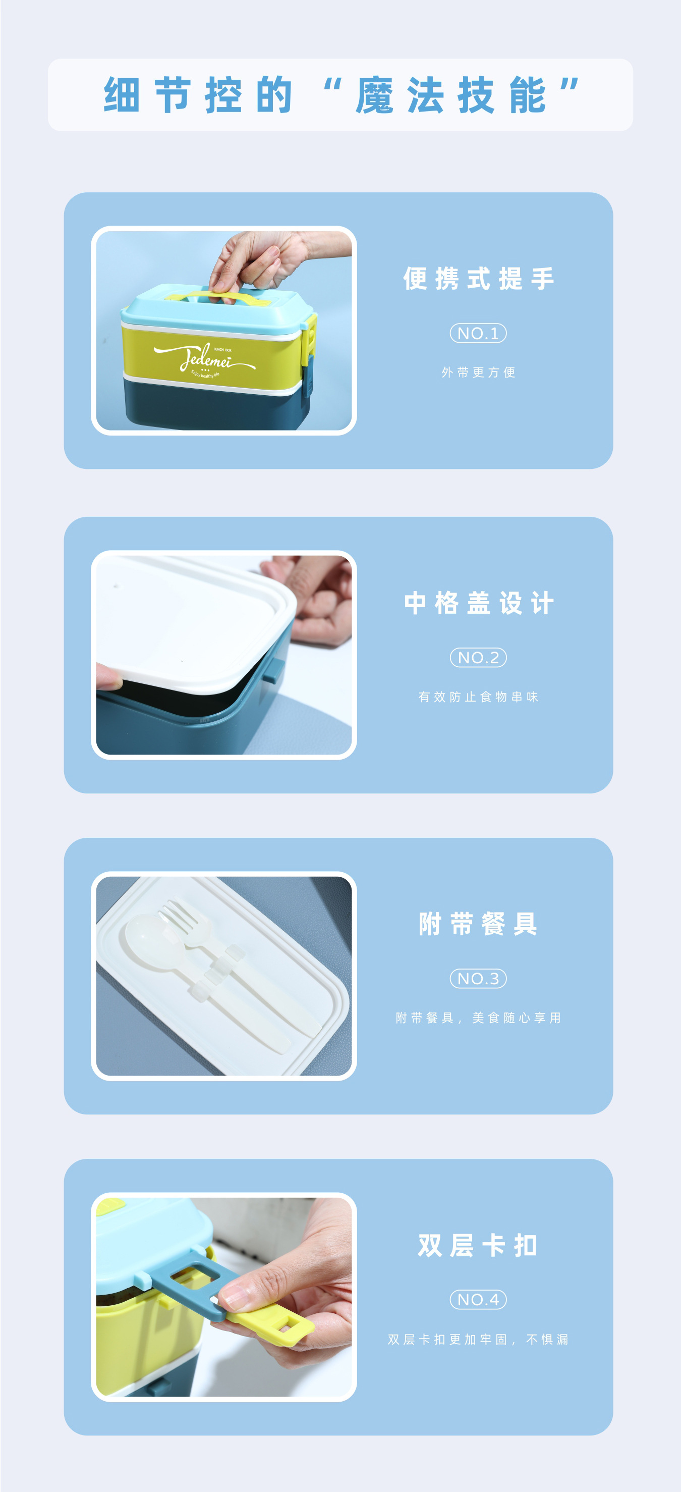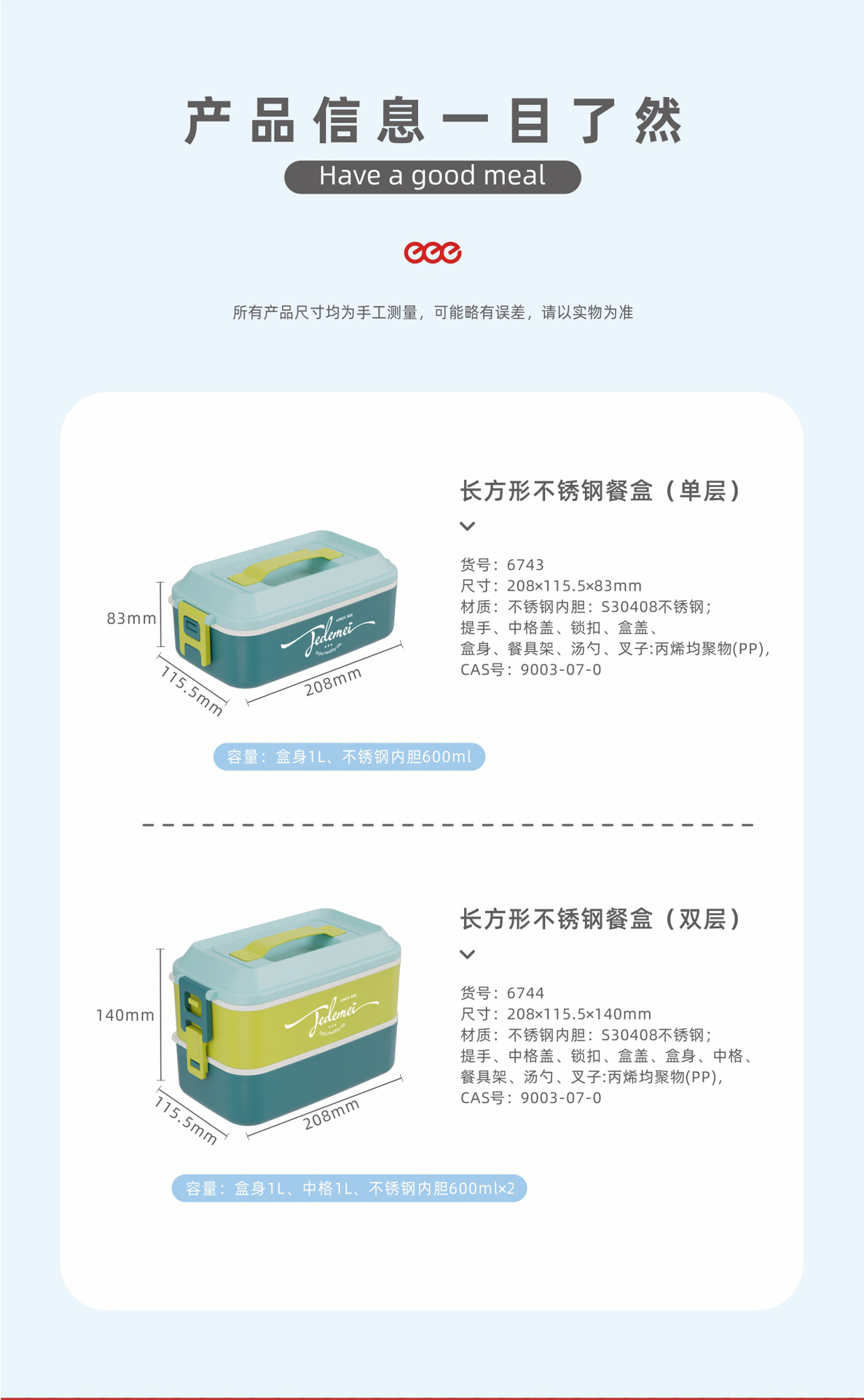 hz269# convenient rectangular handle-type single-layer double-layer stainless steel plastic lunch box with tableware lunch box stool