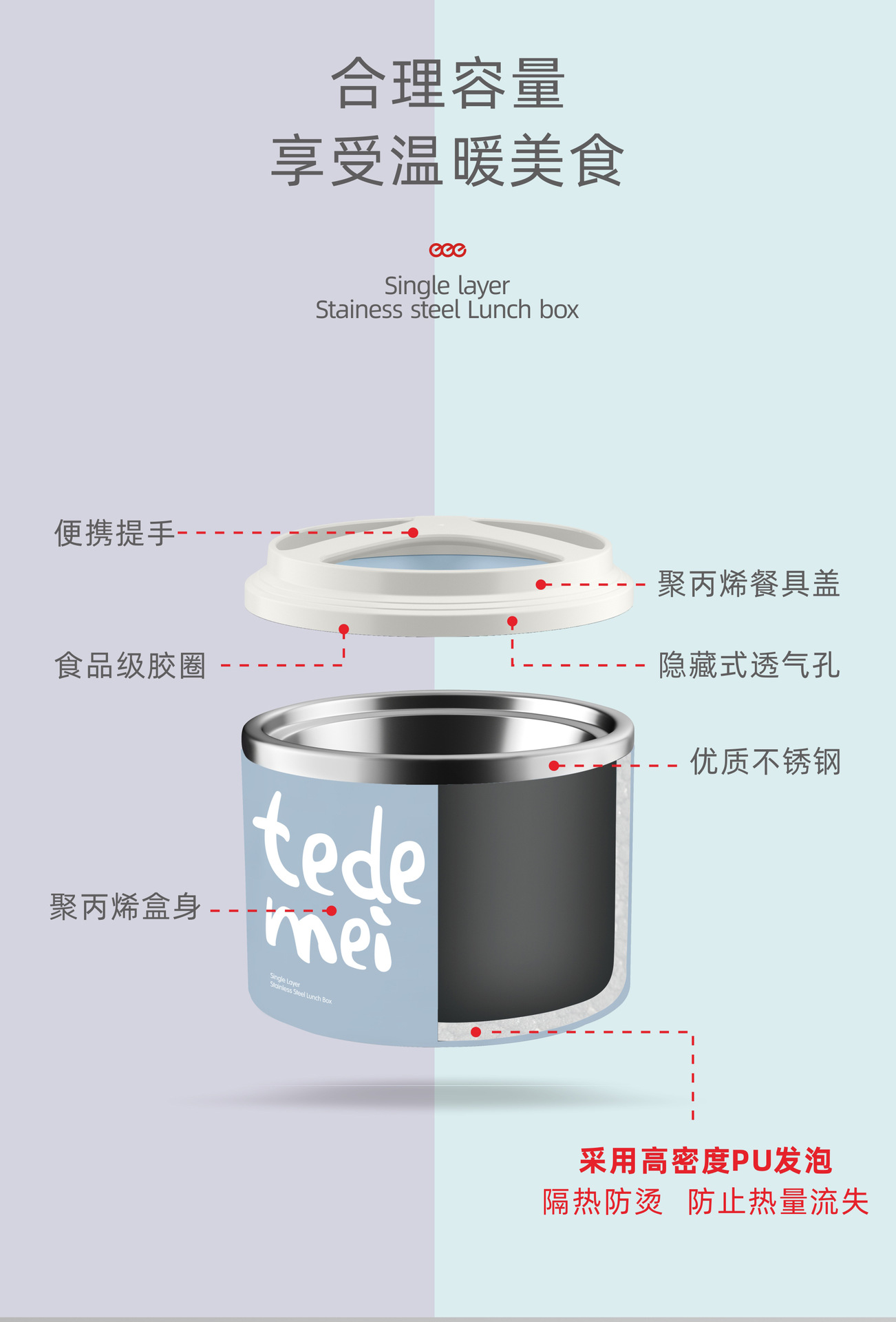 hz269# convenient single-layer insulated lunch box, lunch box