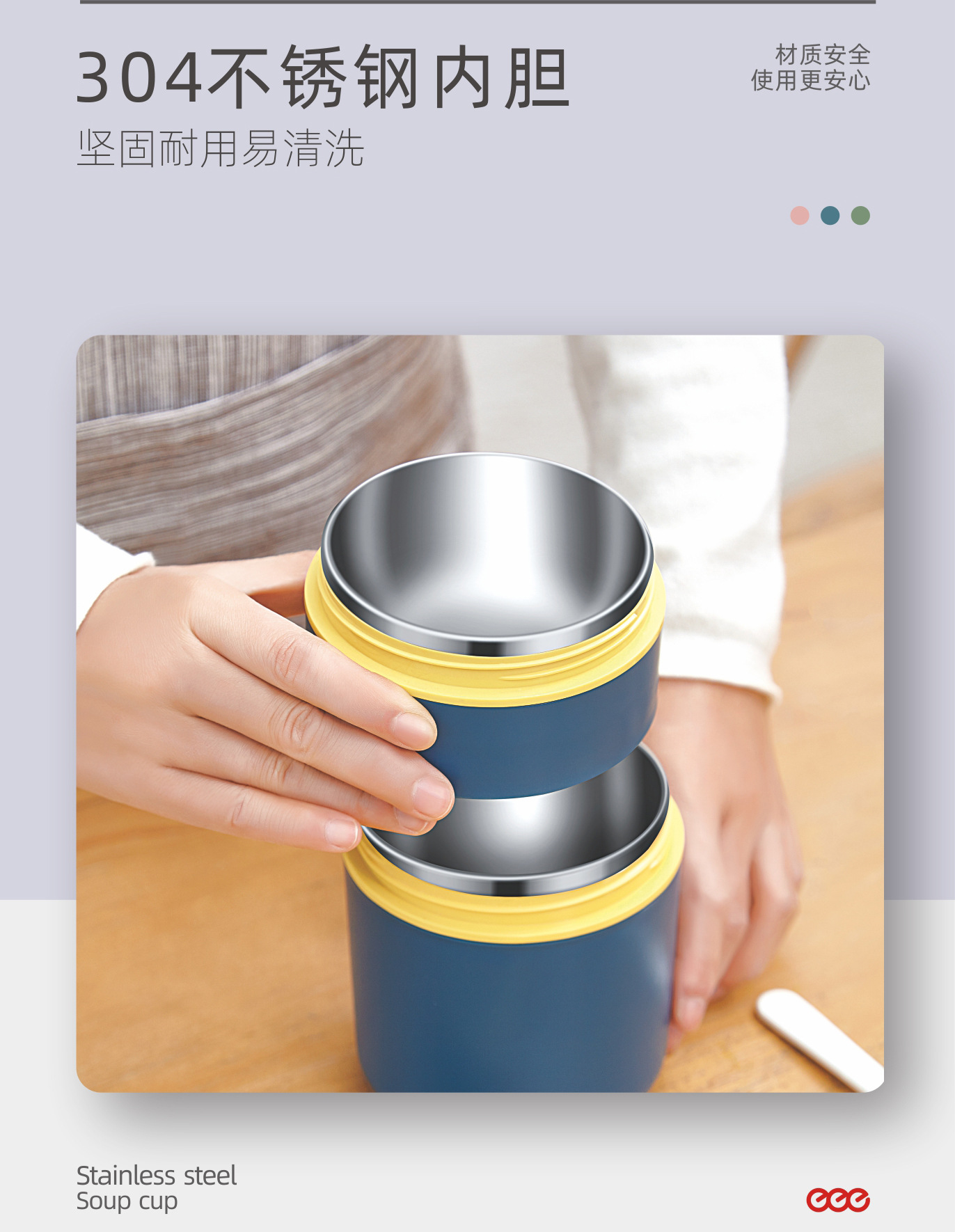 hz269 #304 stainless steel double layer soup cups breakfast cup water cup breakfast large capacity portable mini seal soup jar