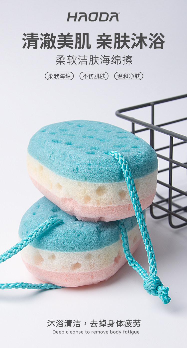 square pink blue honeycomb bath sponge