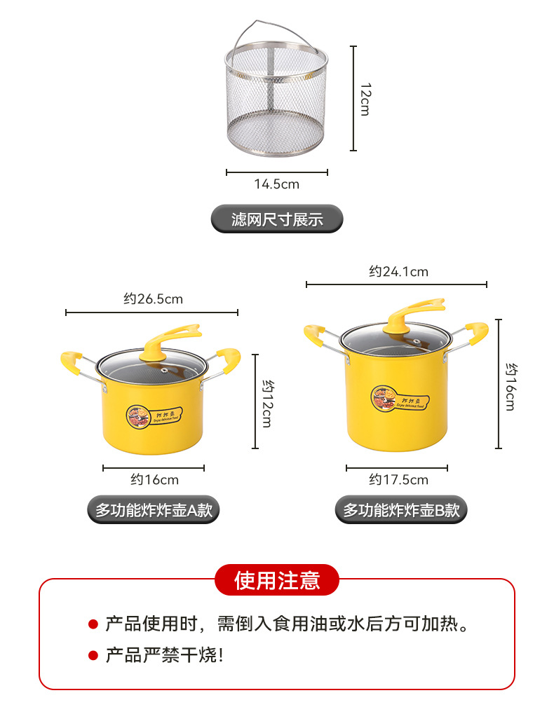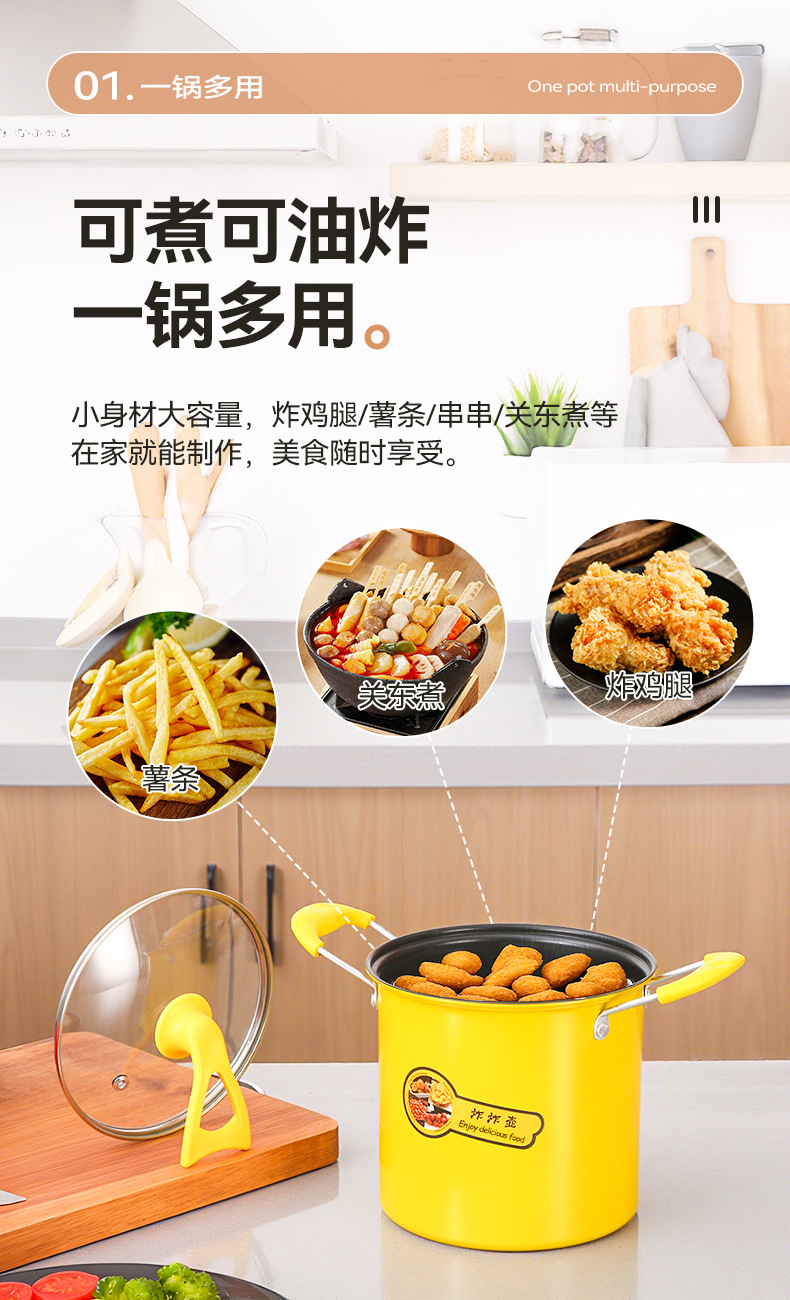 deep fryer deep frying pan household non-stick mini oil pan internet celebrity multi-functional cast iron pan