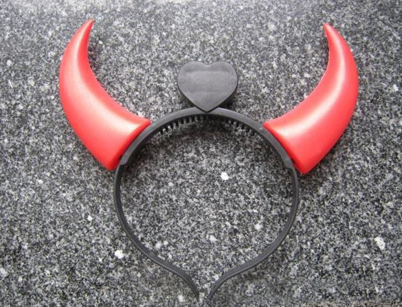 【Instructions】Red horned headband with button battery already installed. Inside the center heart-shaped device, remove the power block to turn on the switch and it will light up. The wide-rimmed headband has smooth little teeth on the top for better grip and comfort.