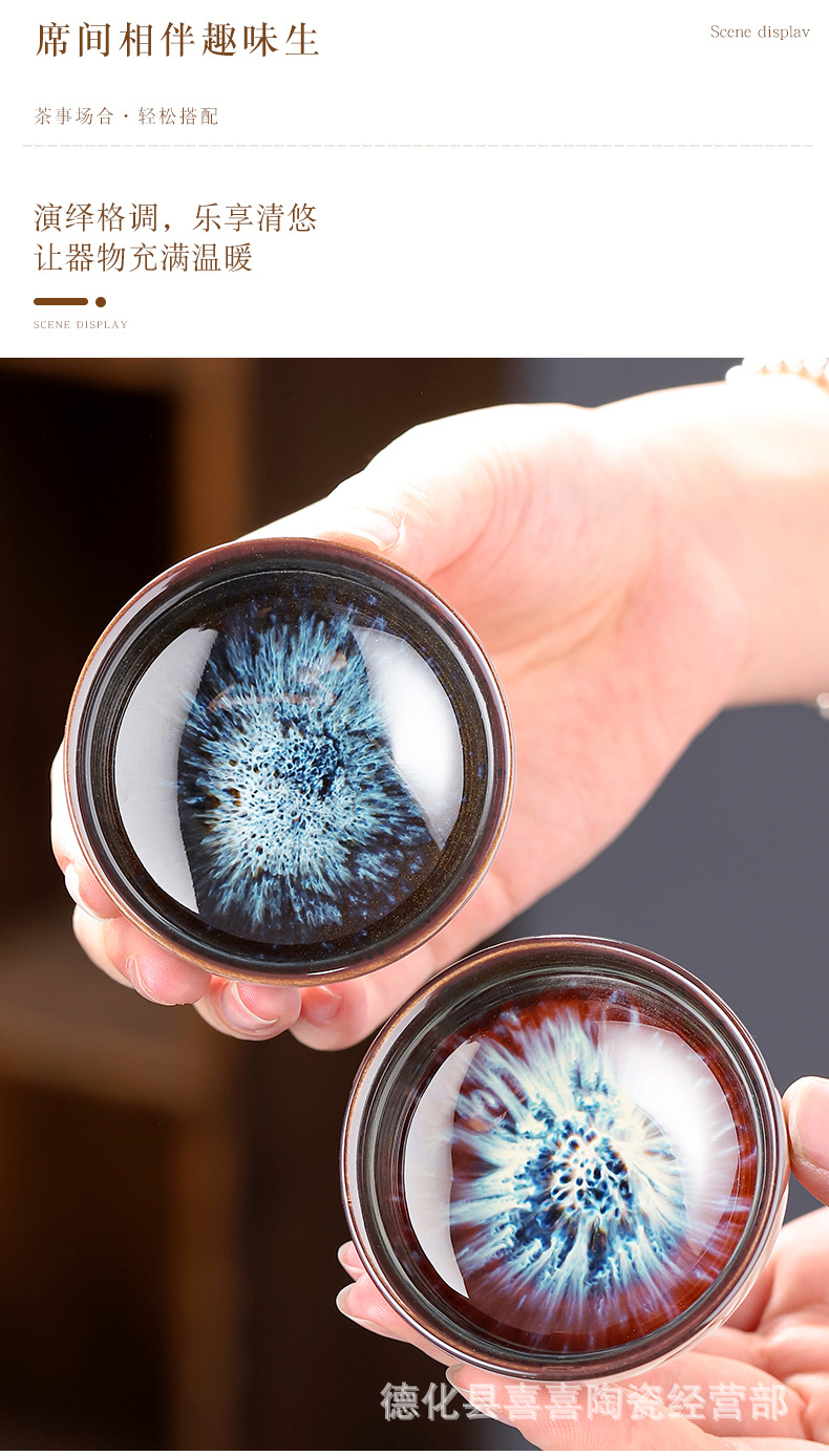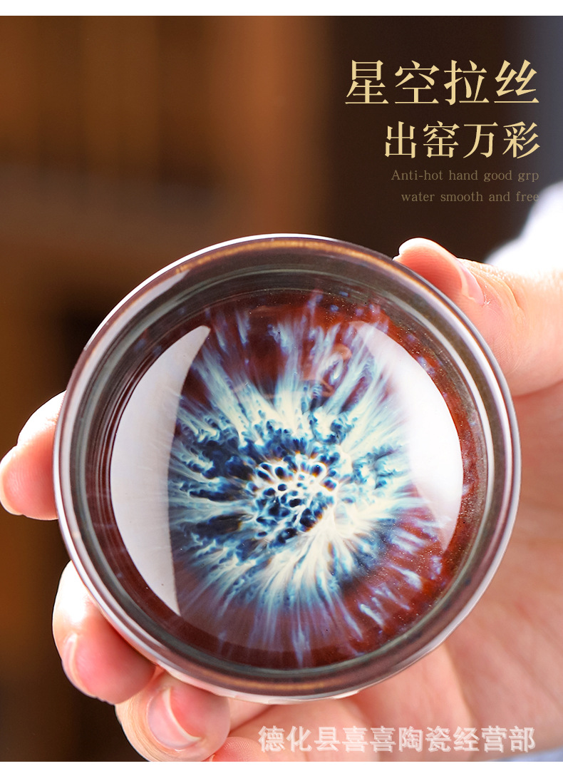 (blue) kiln baked bamboo-hat type cup