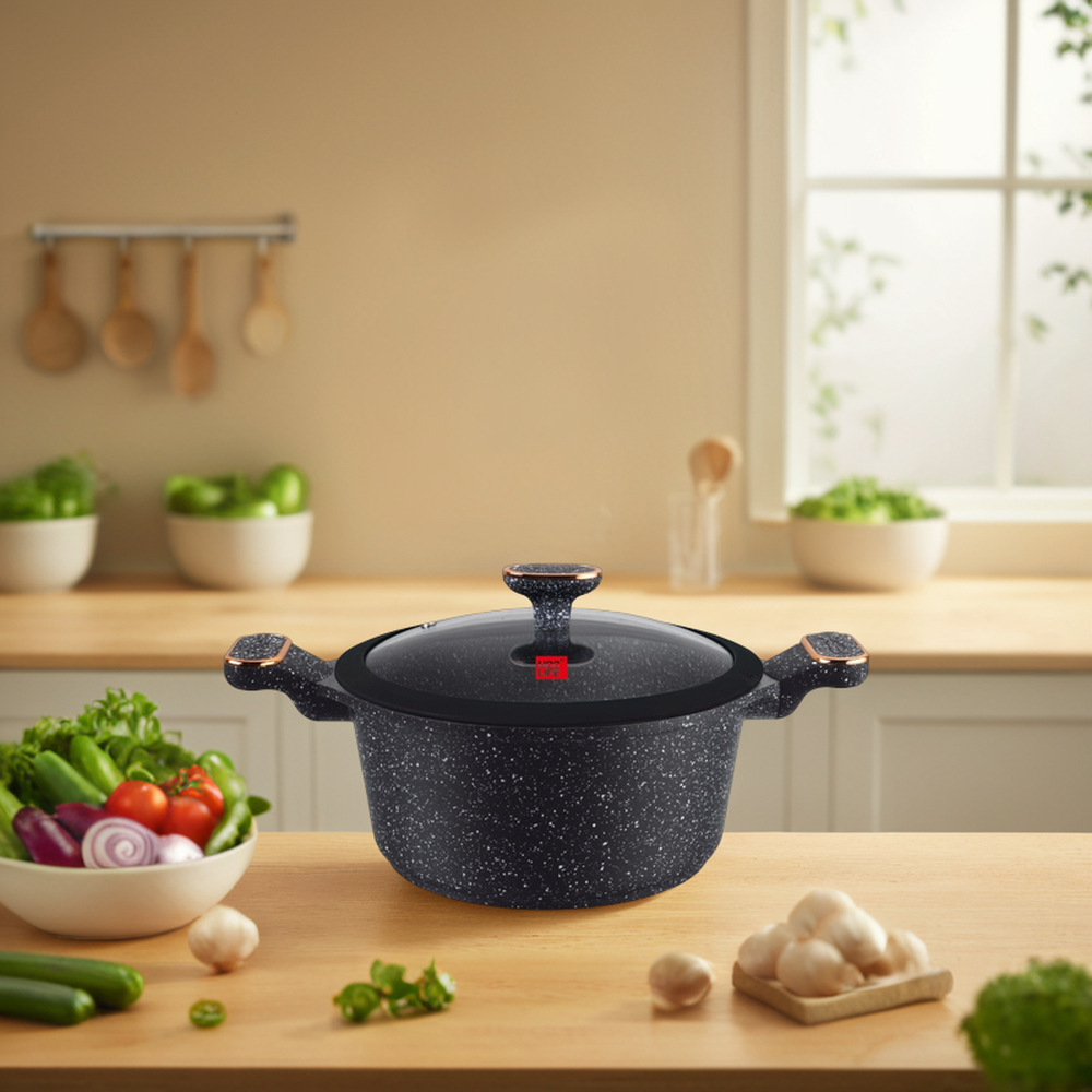granite die casting aluminum pot 12-piece silicon cover non-stick aluminum medical stone set double bottom battery oven