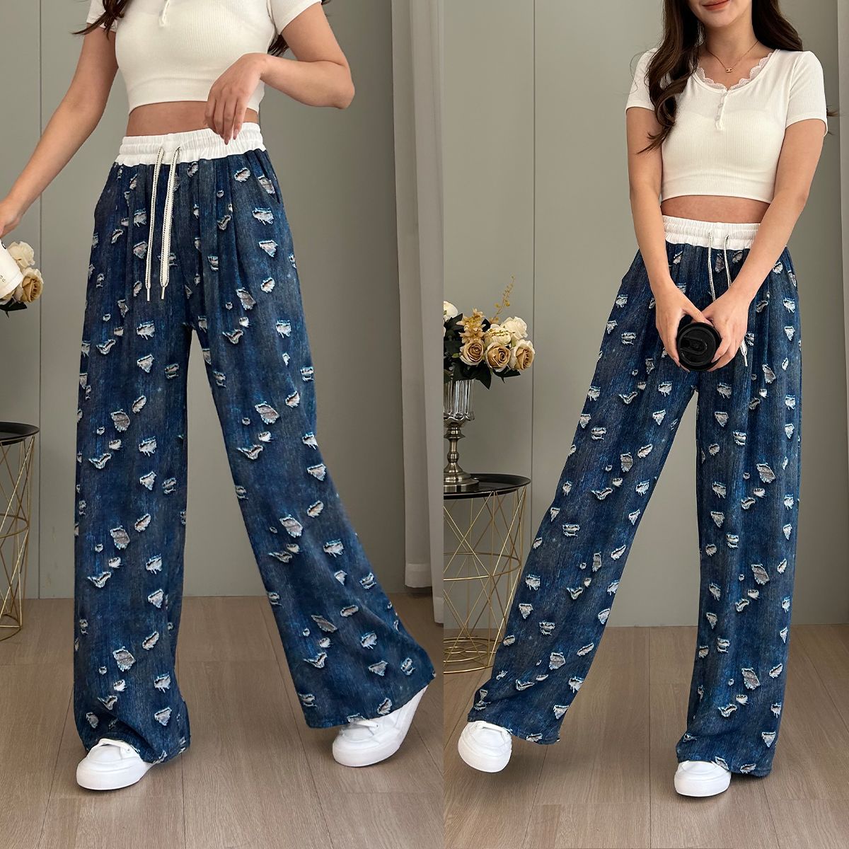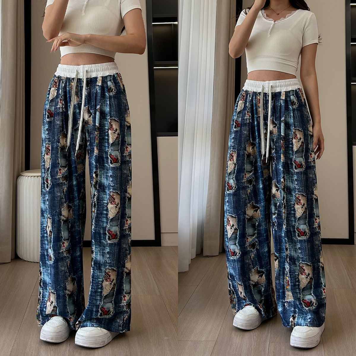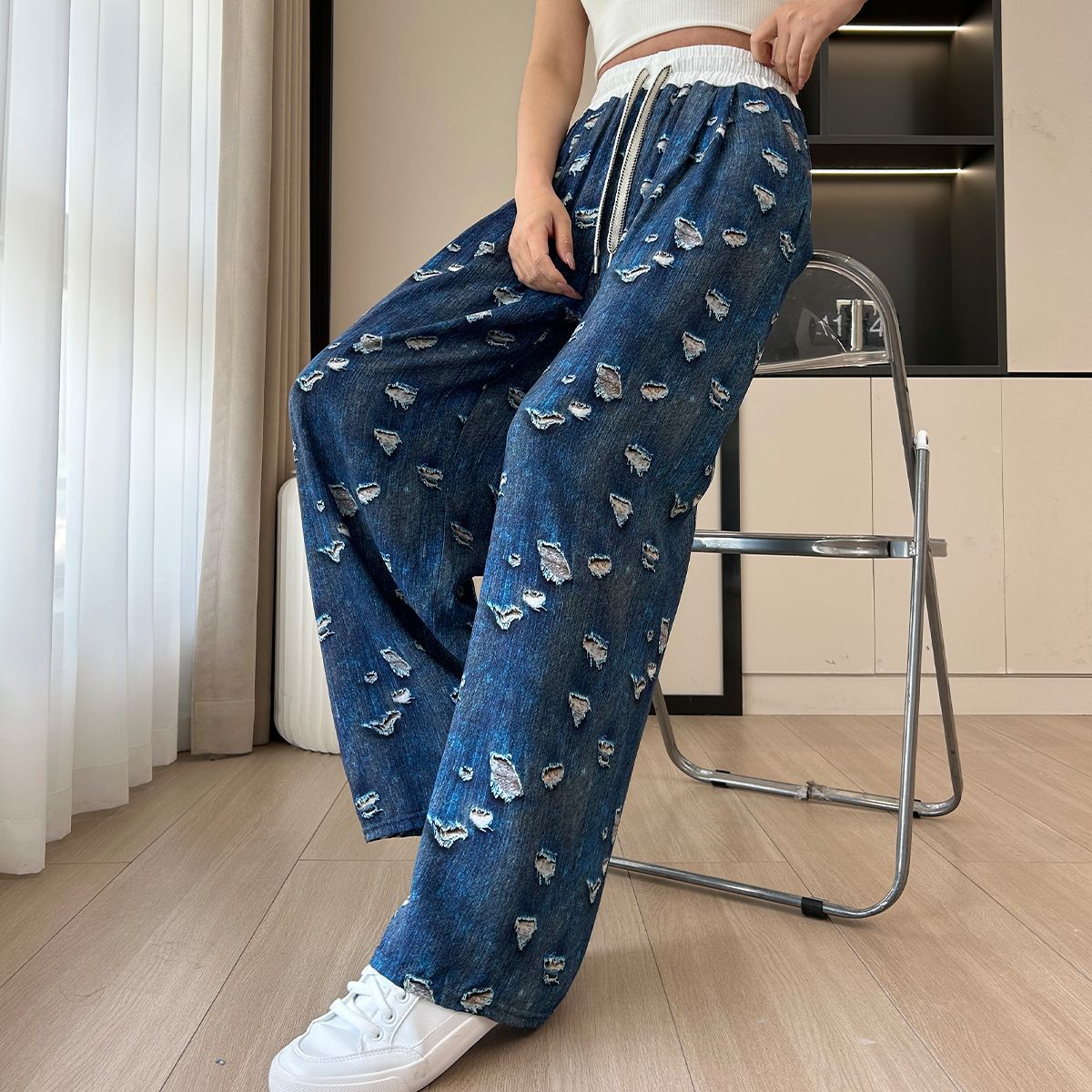 2025 new loose all cotton trousers comfortable wide-leg pants summer casual women's drape draggle-tail straight trousers cross-border