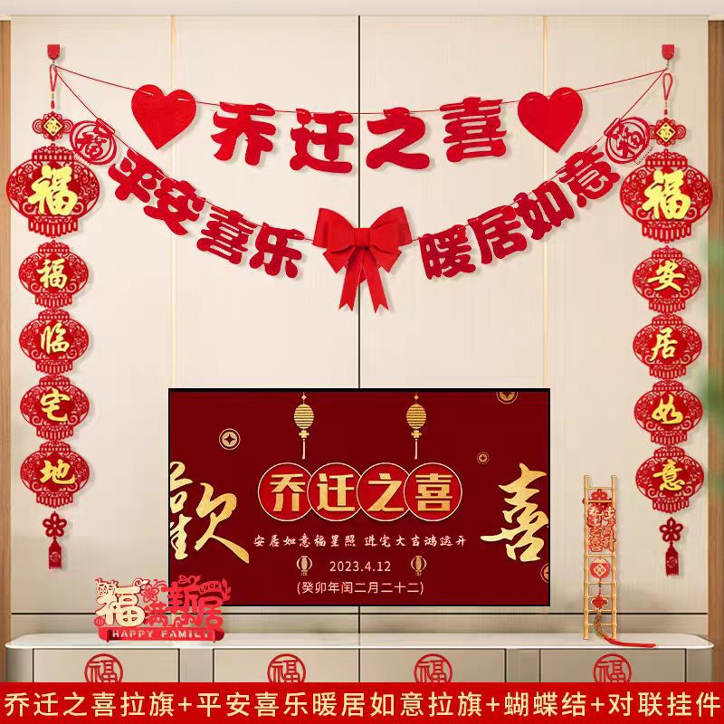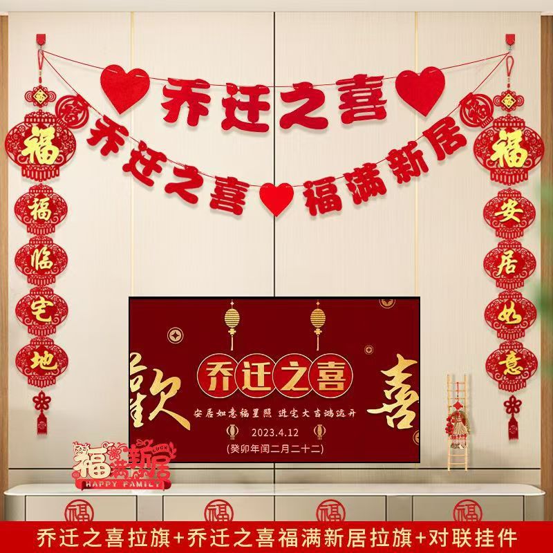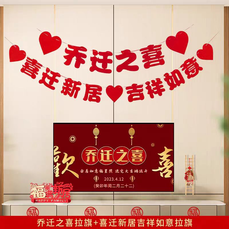 flocking housewarming and housewarming happiness + fu man new home hanging flag