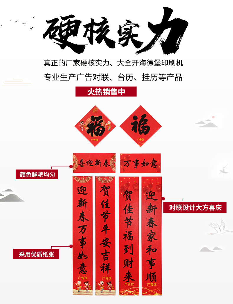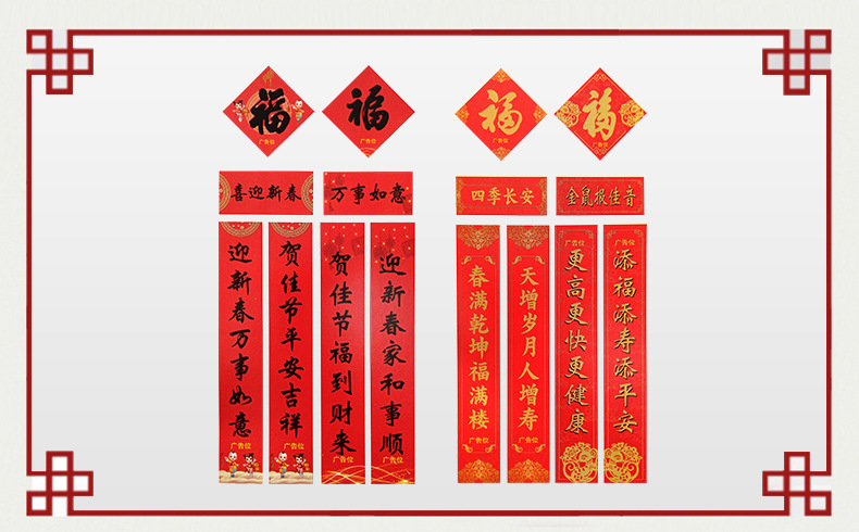 1600 * 225mm horizontal batch: 650 * 225mm (excluding fu character, opp bag couplet is calculated separately)