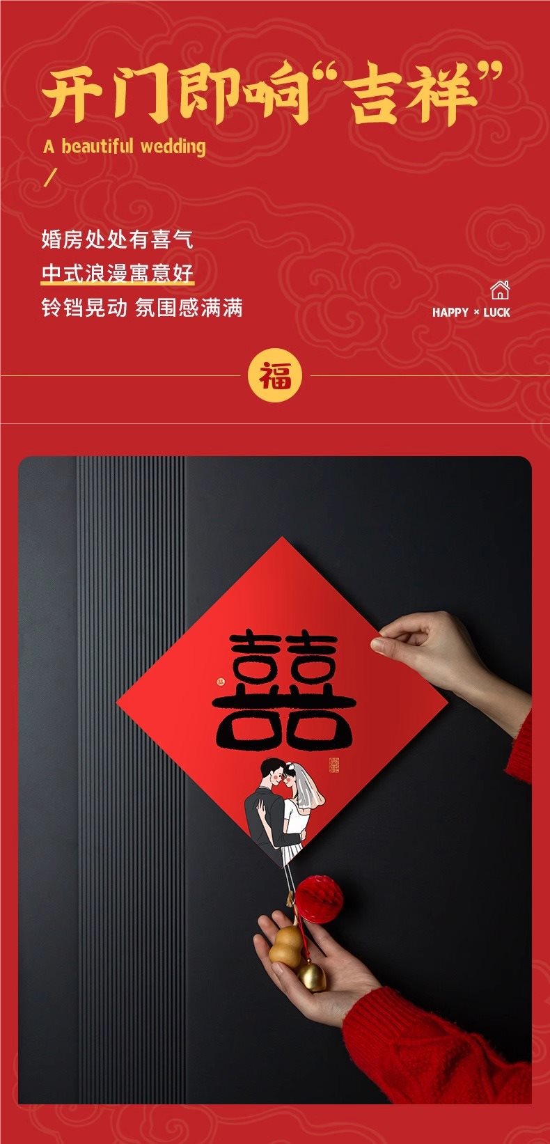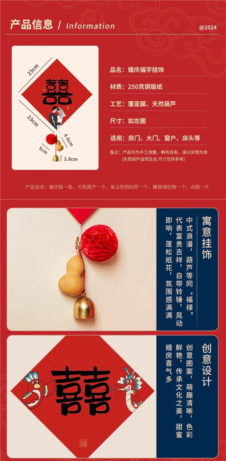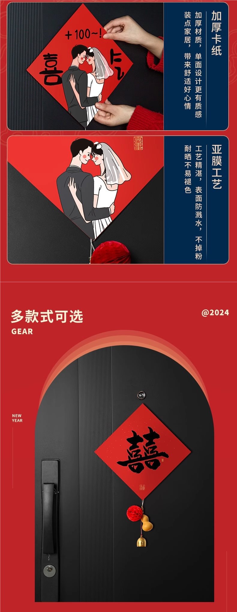 wedding stickers (double happiness) +1 pendant gourd +1 kitten door blocking couplet