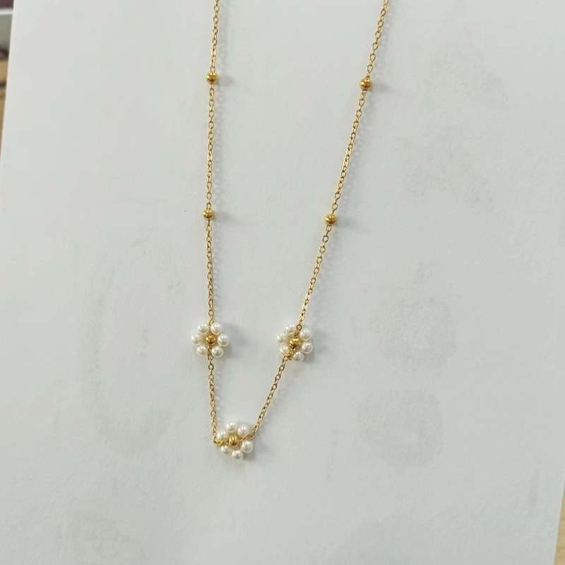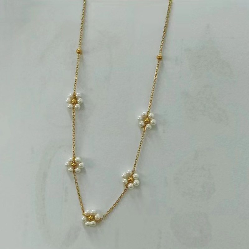 [xl0196] 5 pearl flower necklace gold