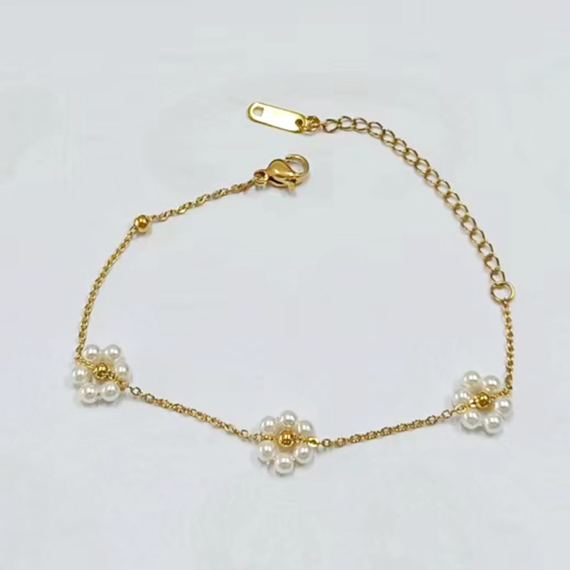 [sl0059] 1 pearl flower bracelet gold