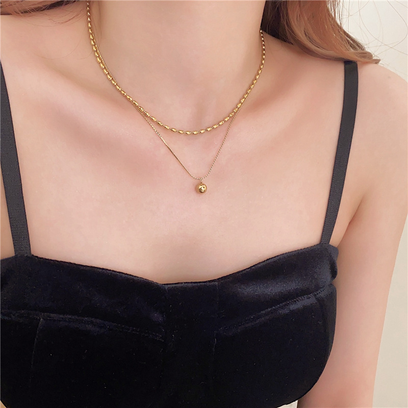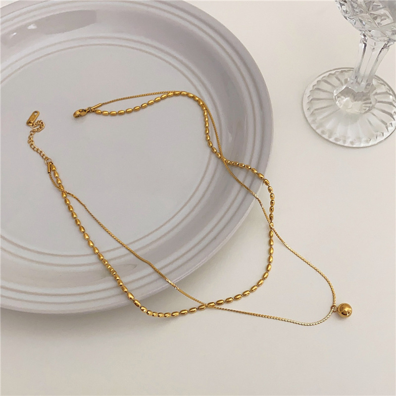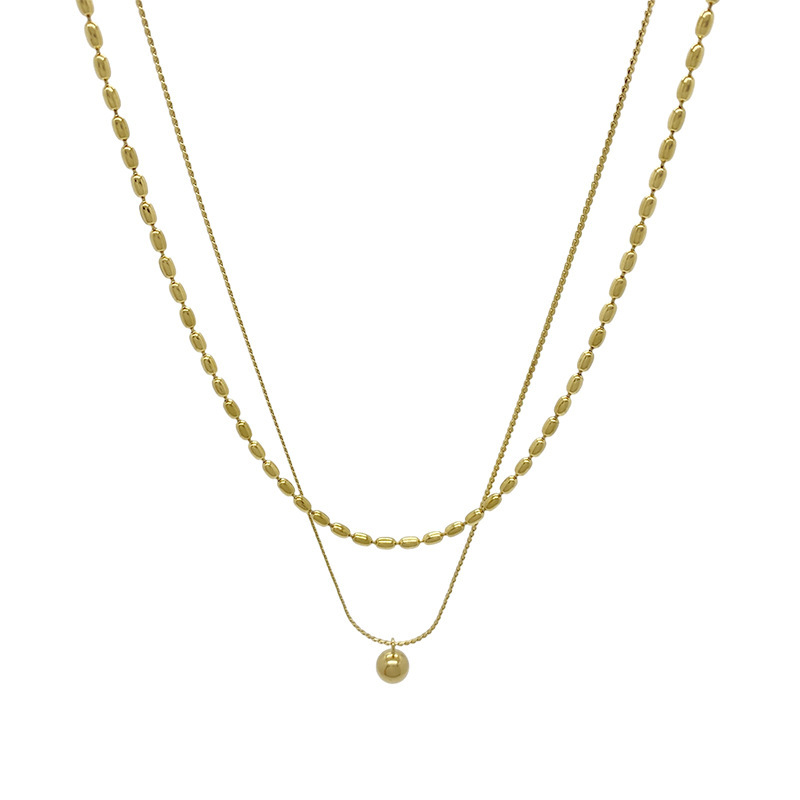 [xl0064] double-layer round beads necklace gold