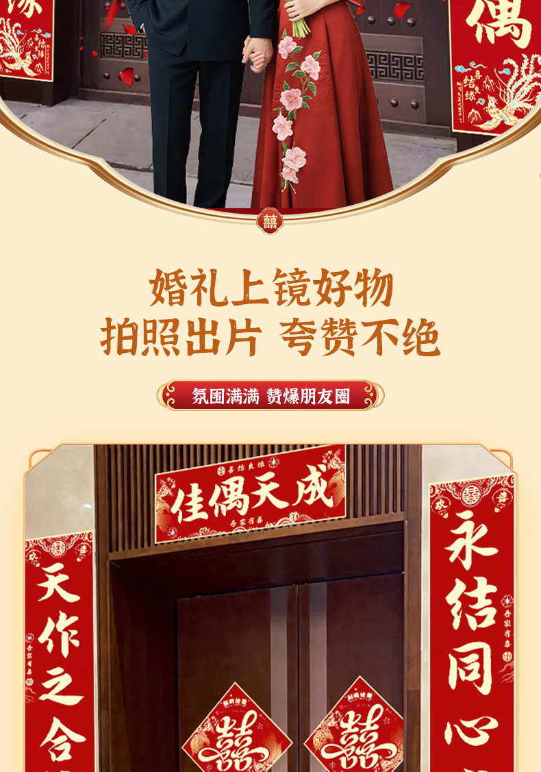 [3 m] merry matrimony gold word couplet + xi word 2 pieces paste traceless