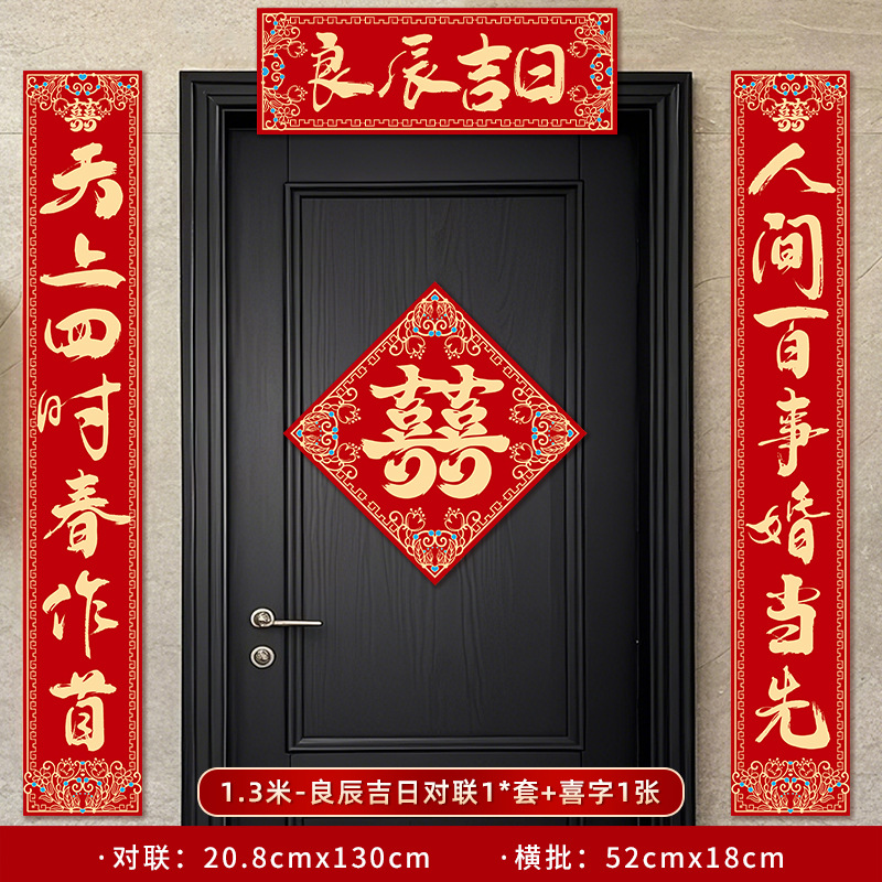 calligraphy style [1 set of 1.3 m fengheming couplet +1 xi word] with adhesive tape