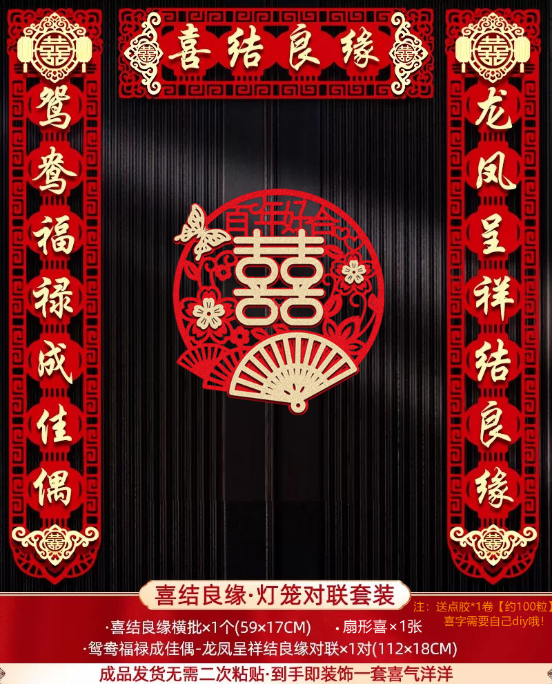 merry matrimony lantern couplet + fan-shaped happiness