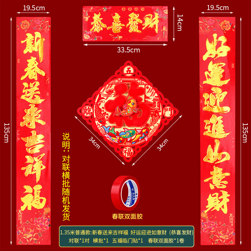 spring festival-good luck + blessing [ordinary 1.35m long] send double-sided adhesive ☆