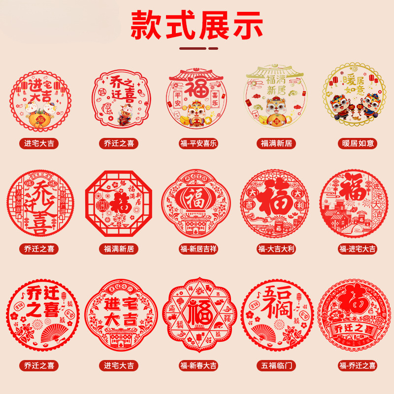 five blessings fu [34cm * 34cm] get 3 pieces free double-side paste ☆