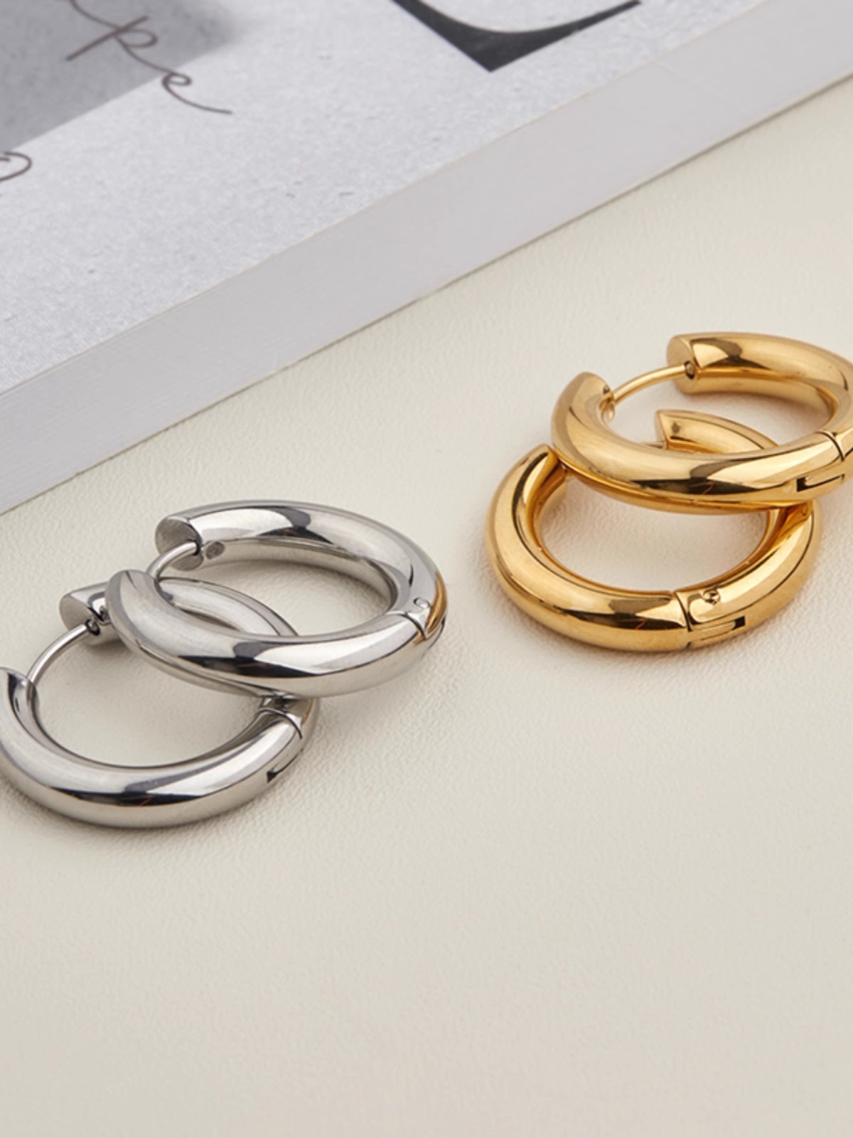 fe22-simple bracelet earrings-steel color