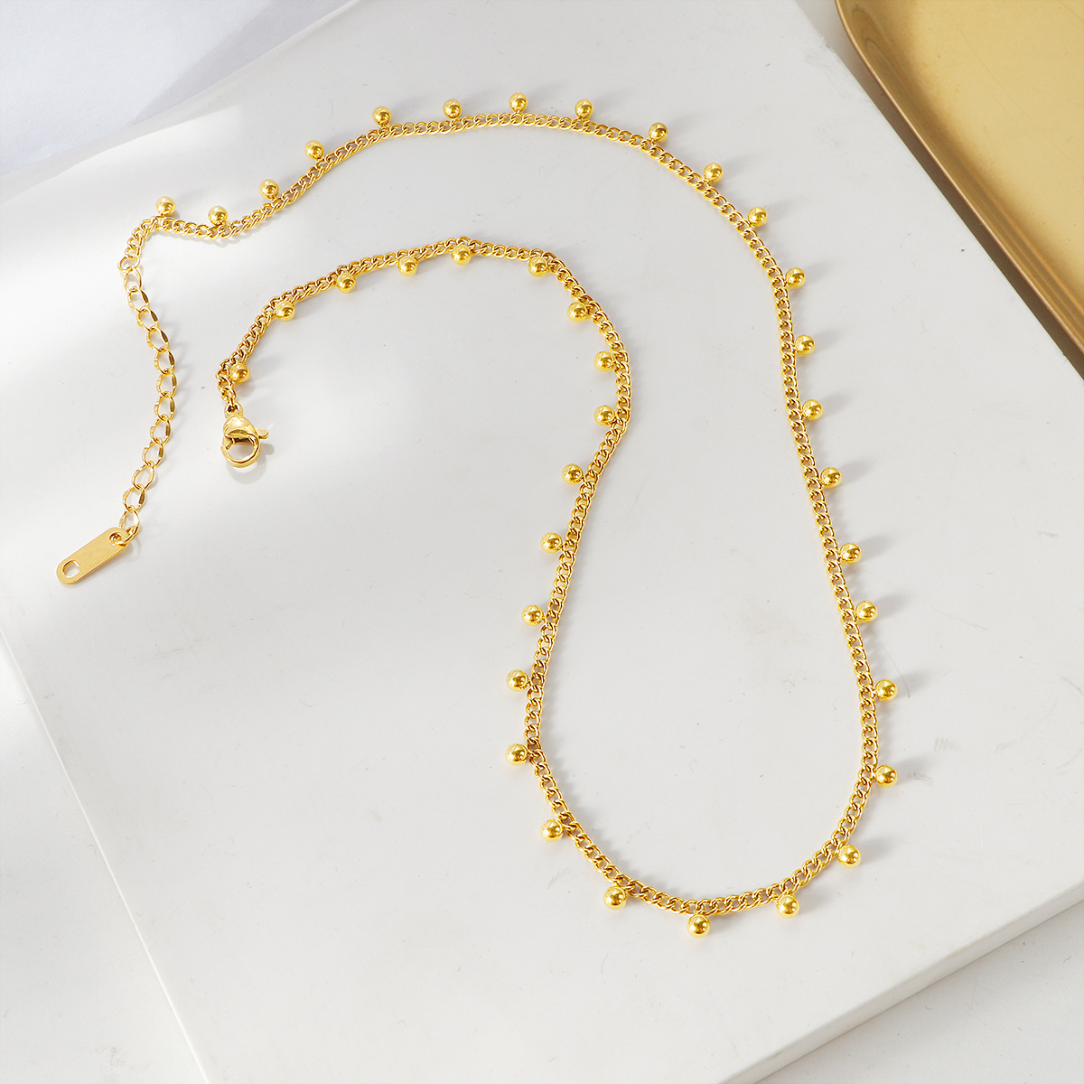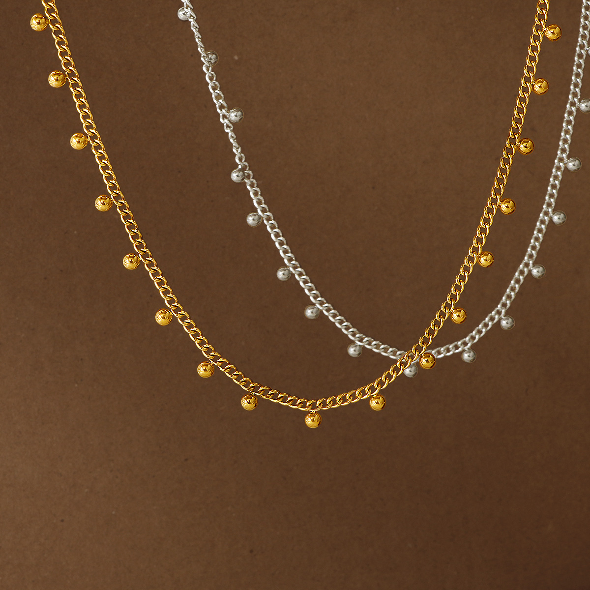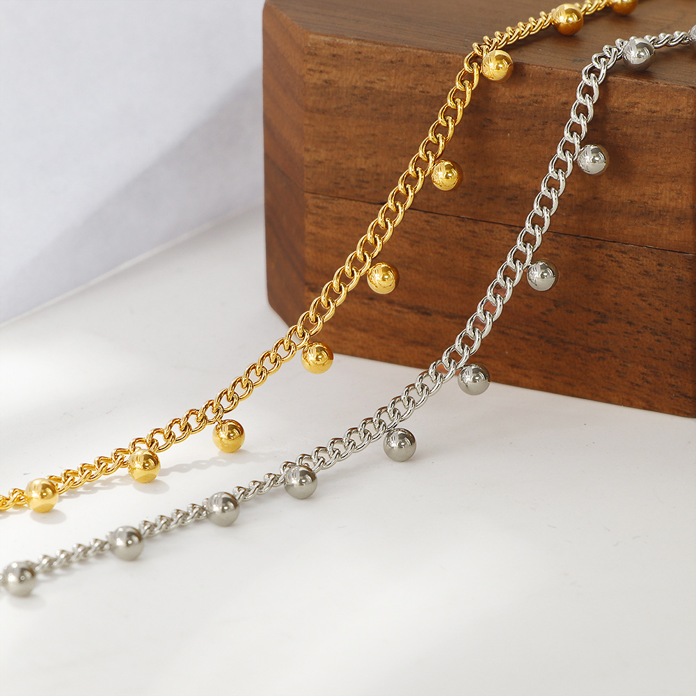 fx398 lace gold bean necklace-steel color