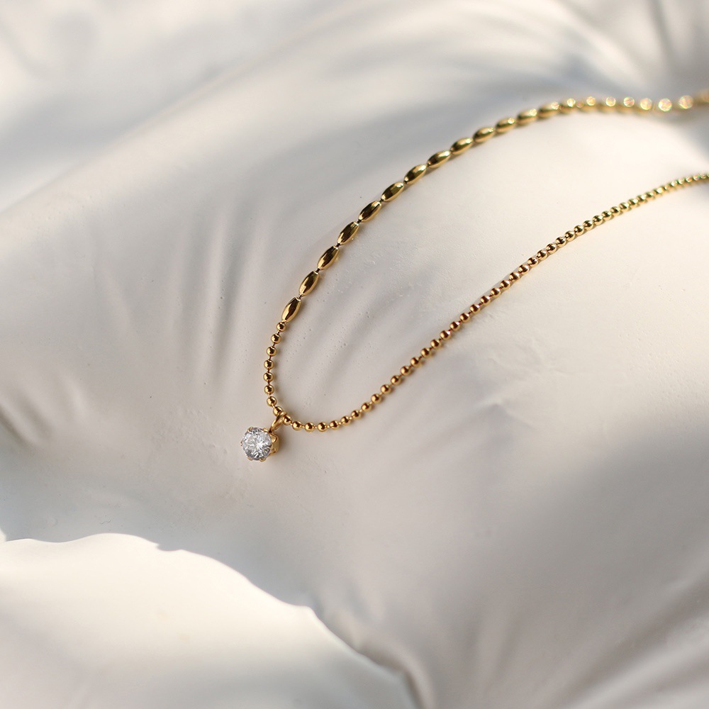 [fx59] single diamond rice necklace-gold