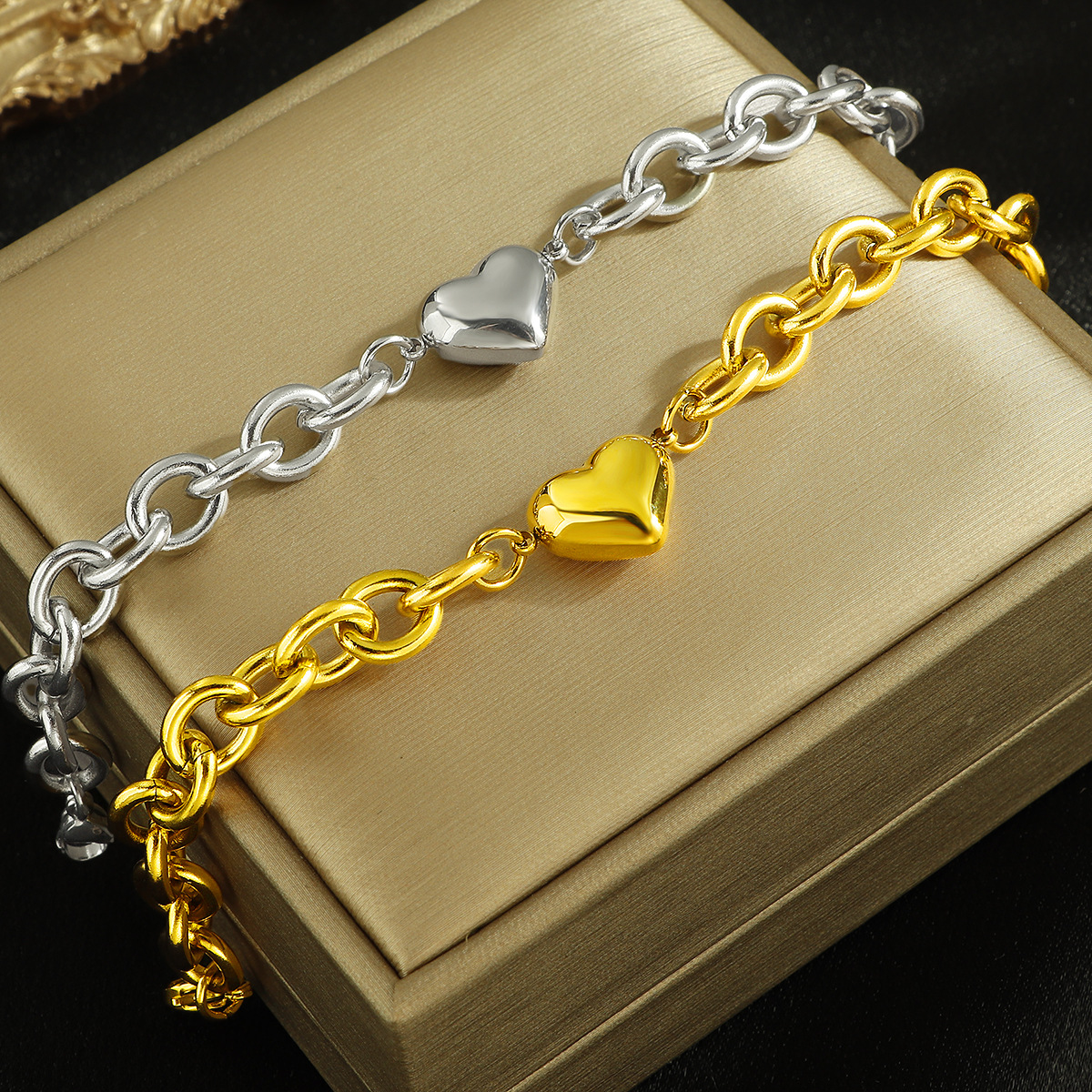 fs149-thick type o-word heart bracelet-steel color