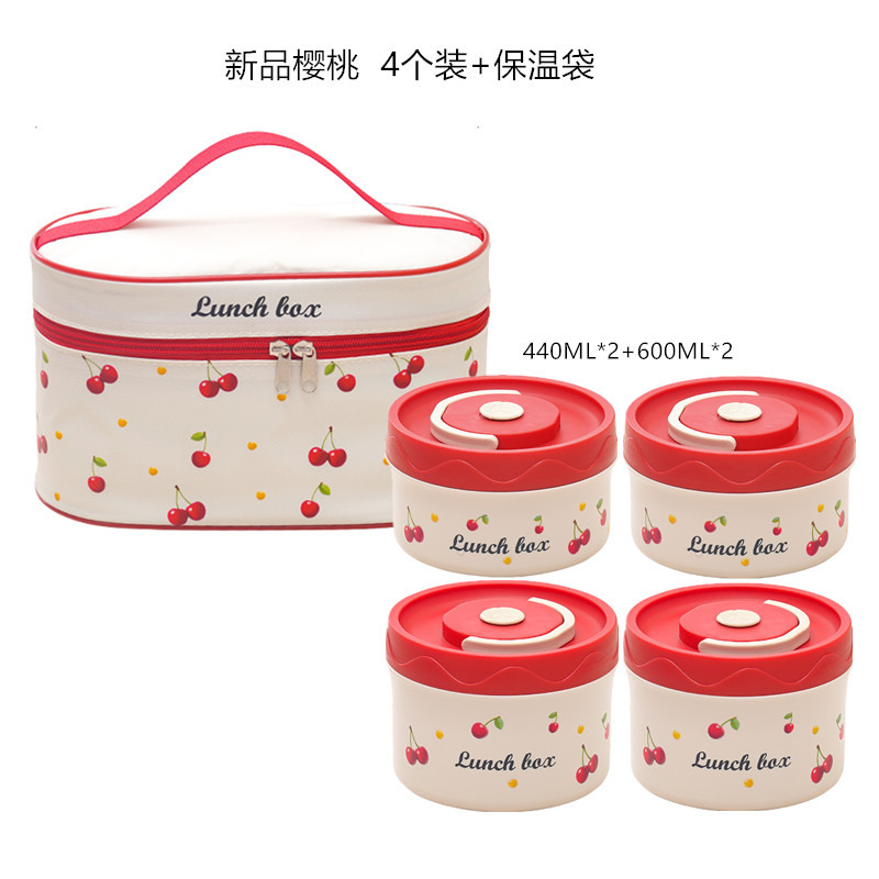 new cherry-304 steel lunch box 4 pack + thermal bag