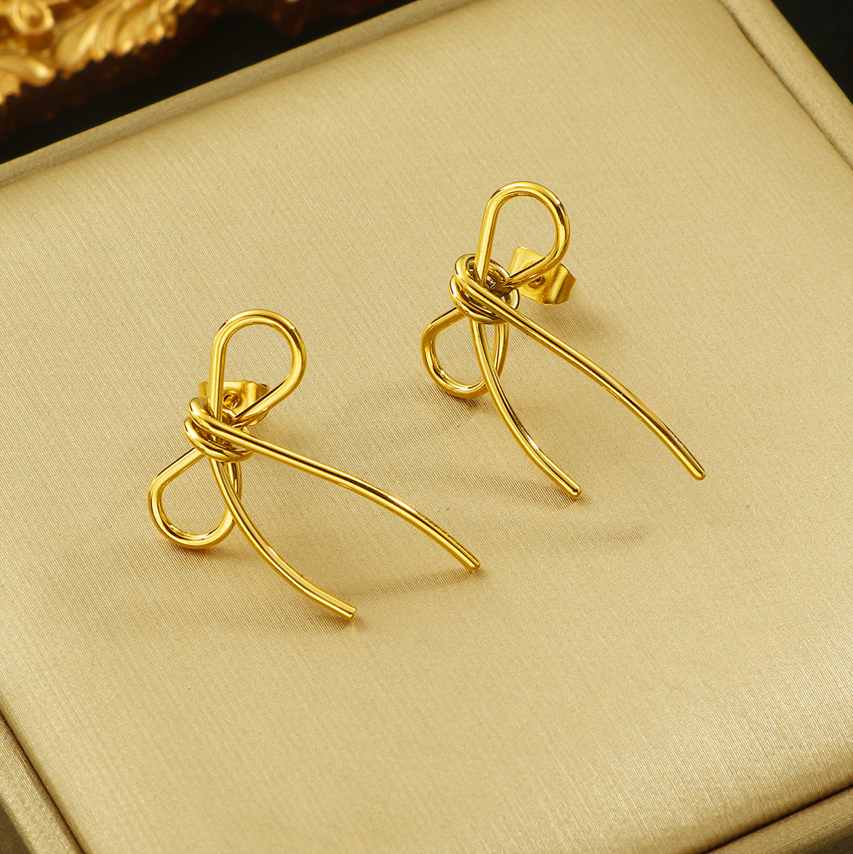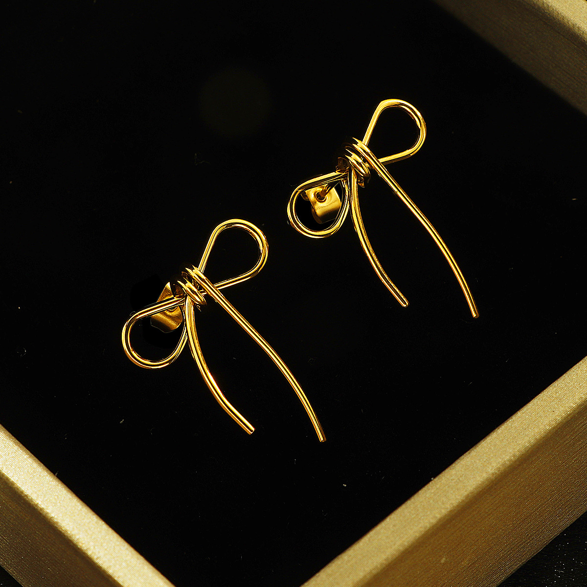 fe11-line bow stud earrings-gold