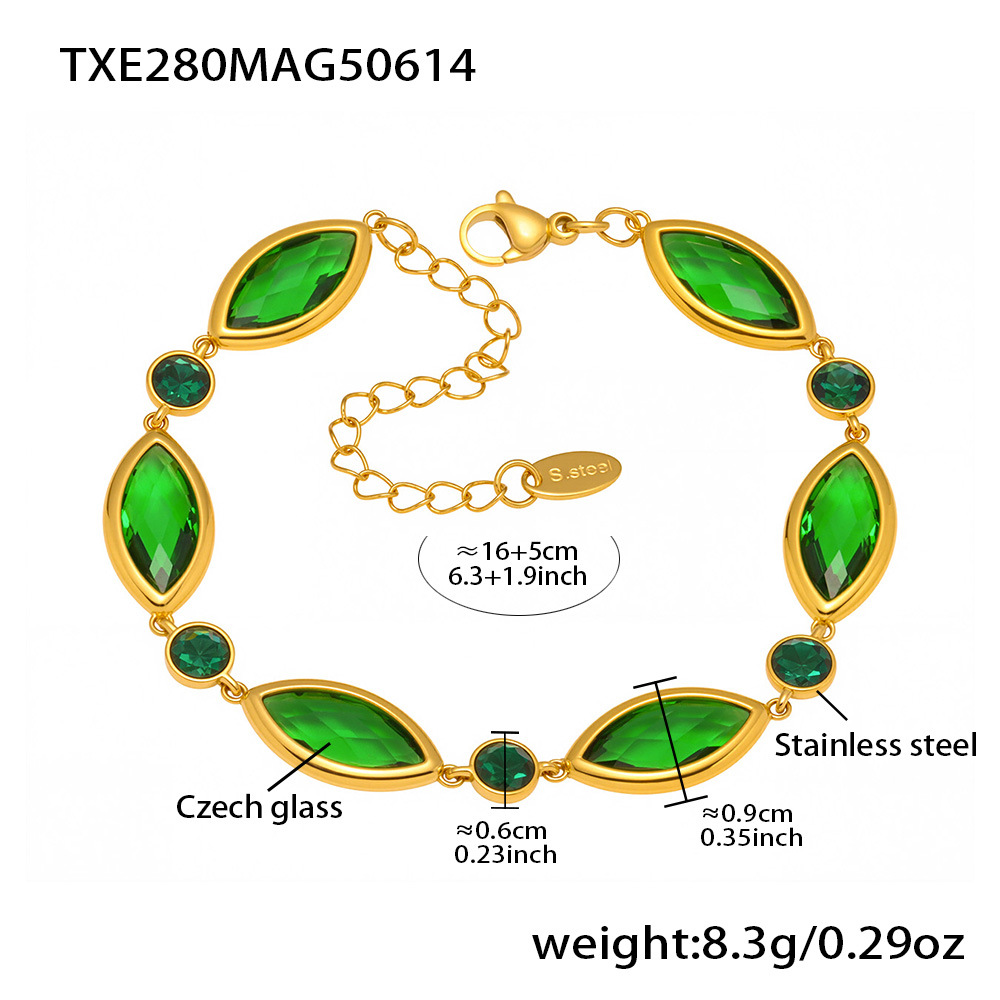 txe280-gold green glass stone bracelet 16 + 5cm