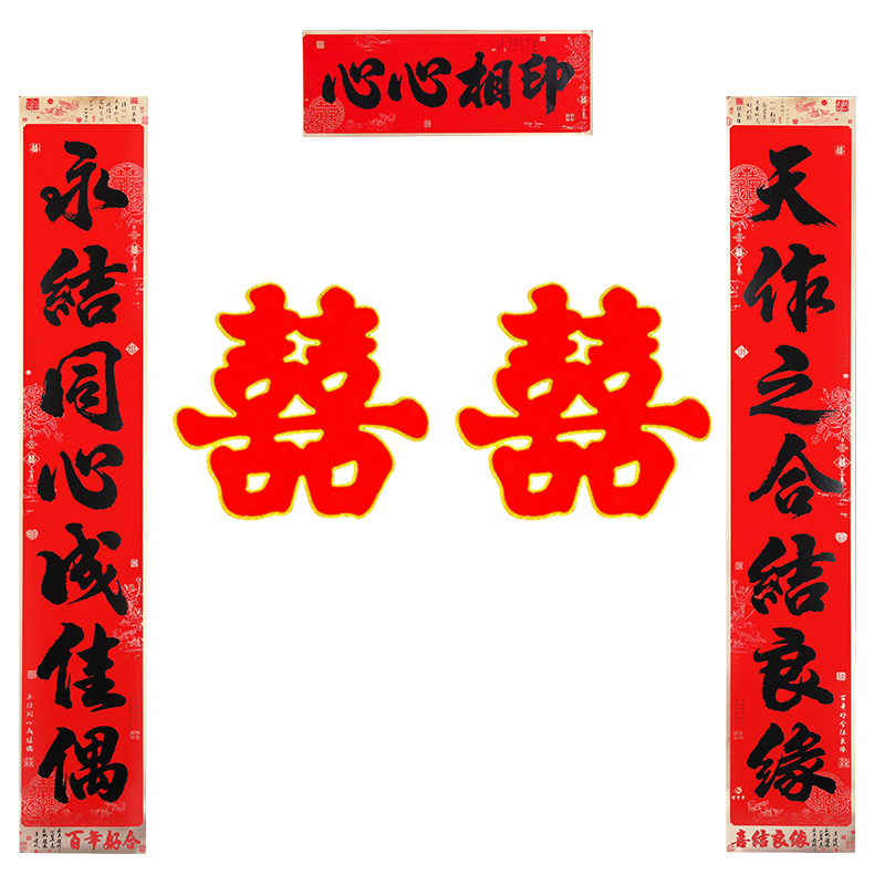 | calligraphy black word marriage couplets (get 2 pieces wedding stickers for free) [match according to couplet size]] | CN¥ 17.46 | 899 piece available |