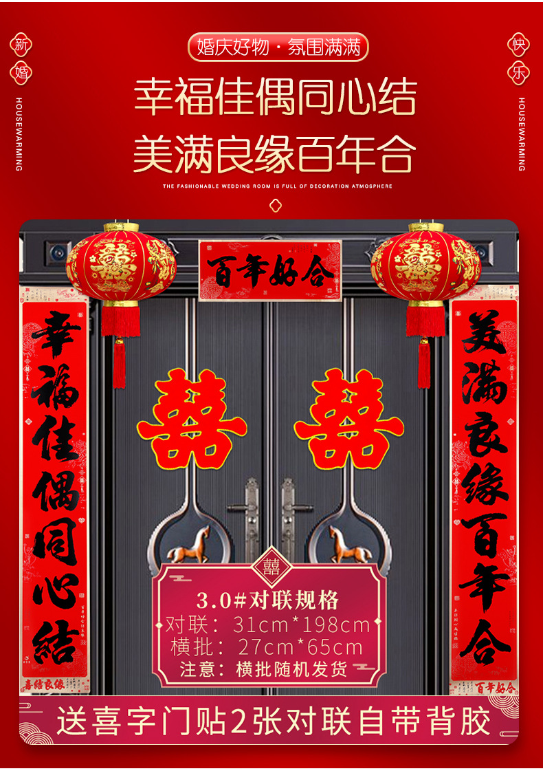 | calligraphy black word marriage couplets (get 2 pieces wedding stickers for free) [match according to couplet size]] | CN¥ 20.41 | 899 piece available |