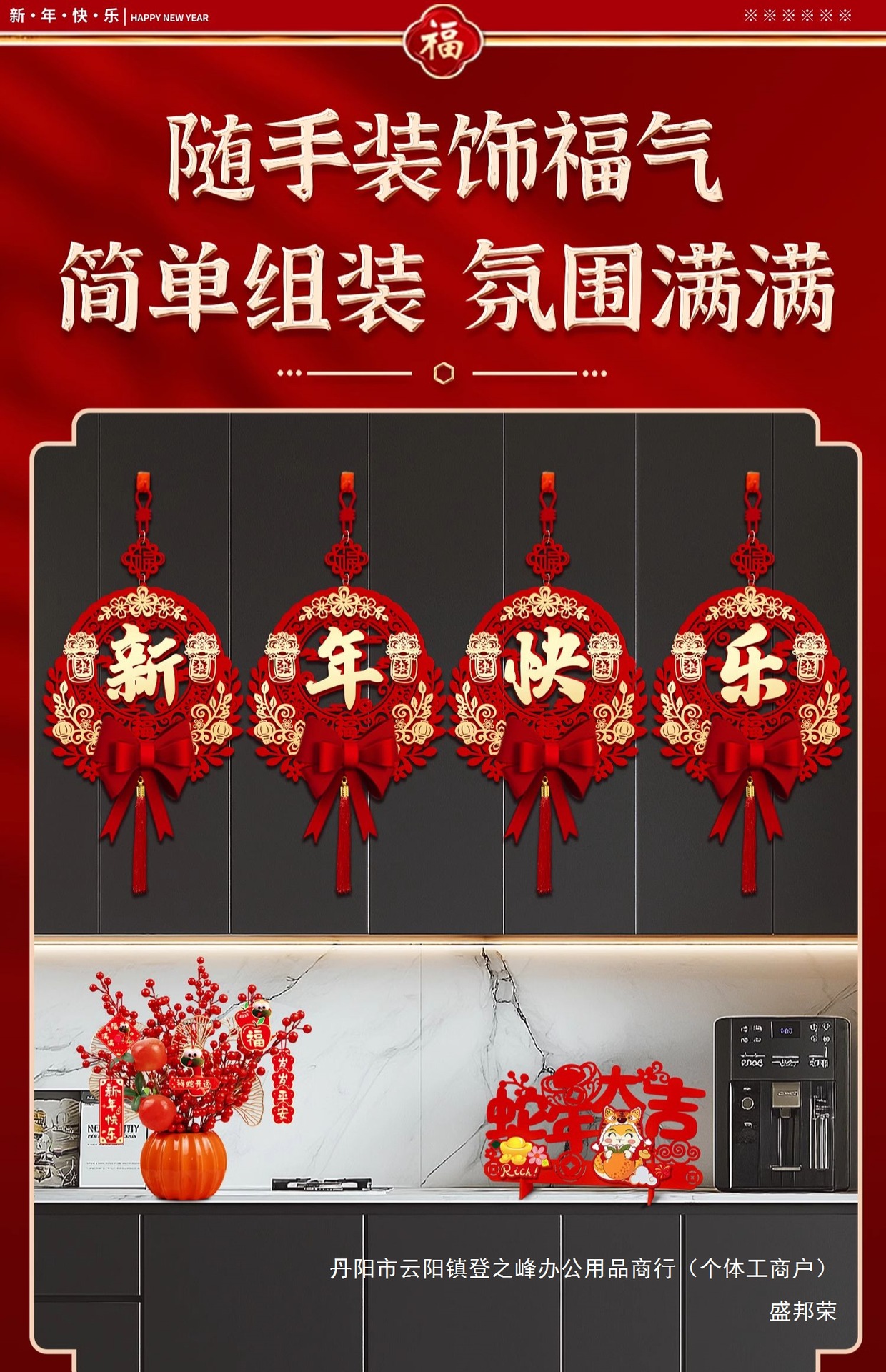 [2025 happy new year] four-word bow ornaments