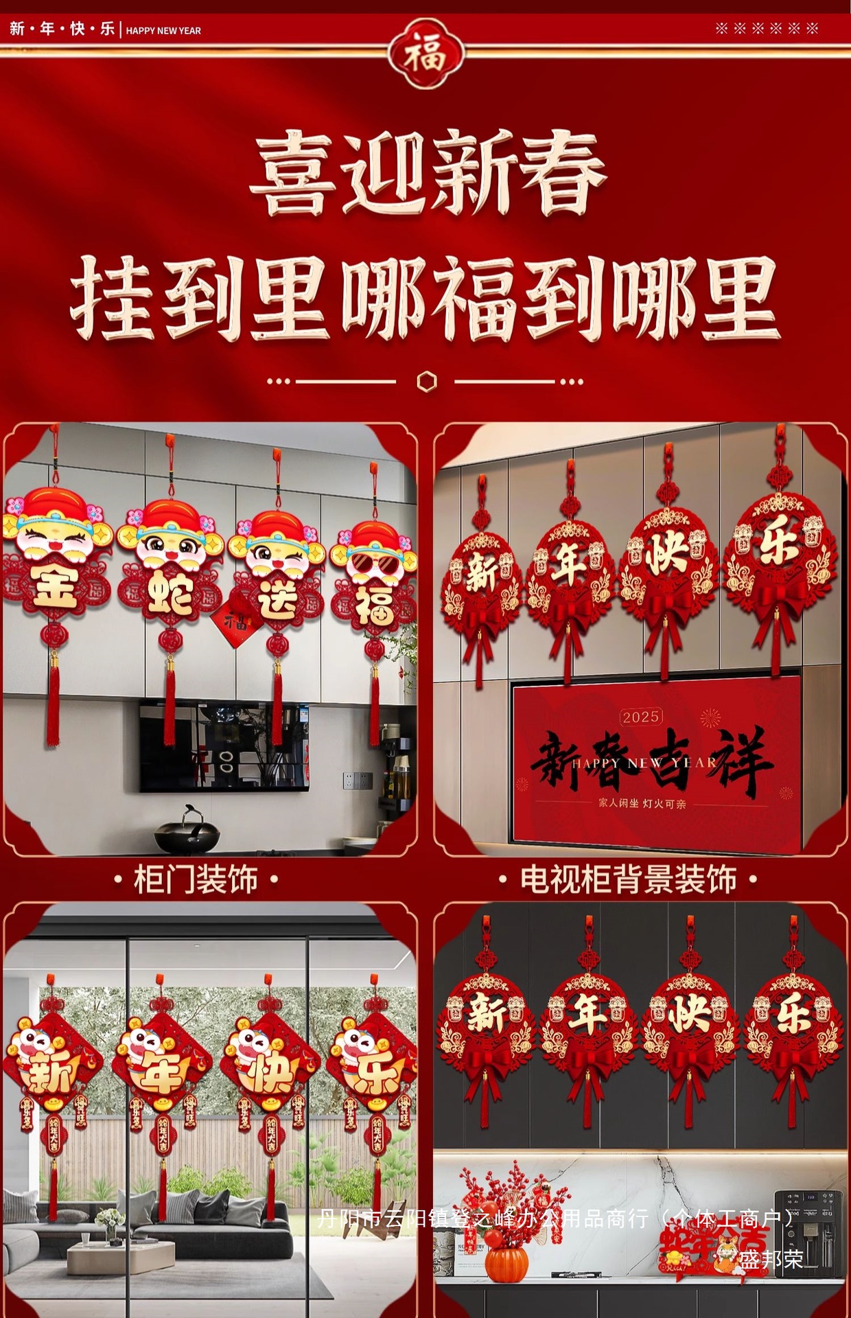 [color printing happy new year] four-word bow ornaments