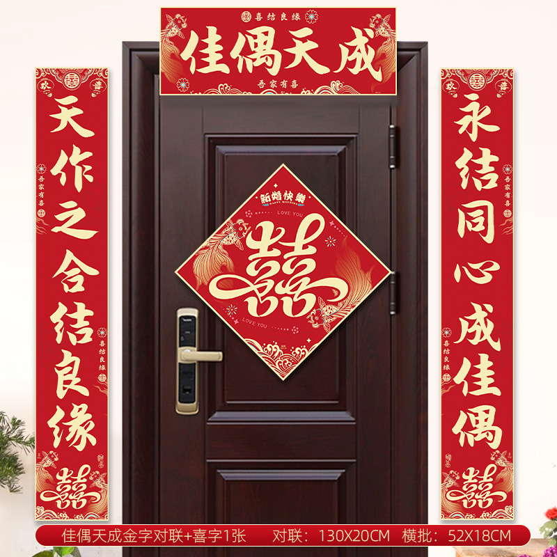 [1.3 m] jiadu tiancheng golden word couplet + xi word 1 piece