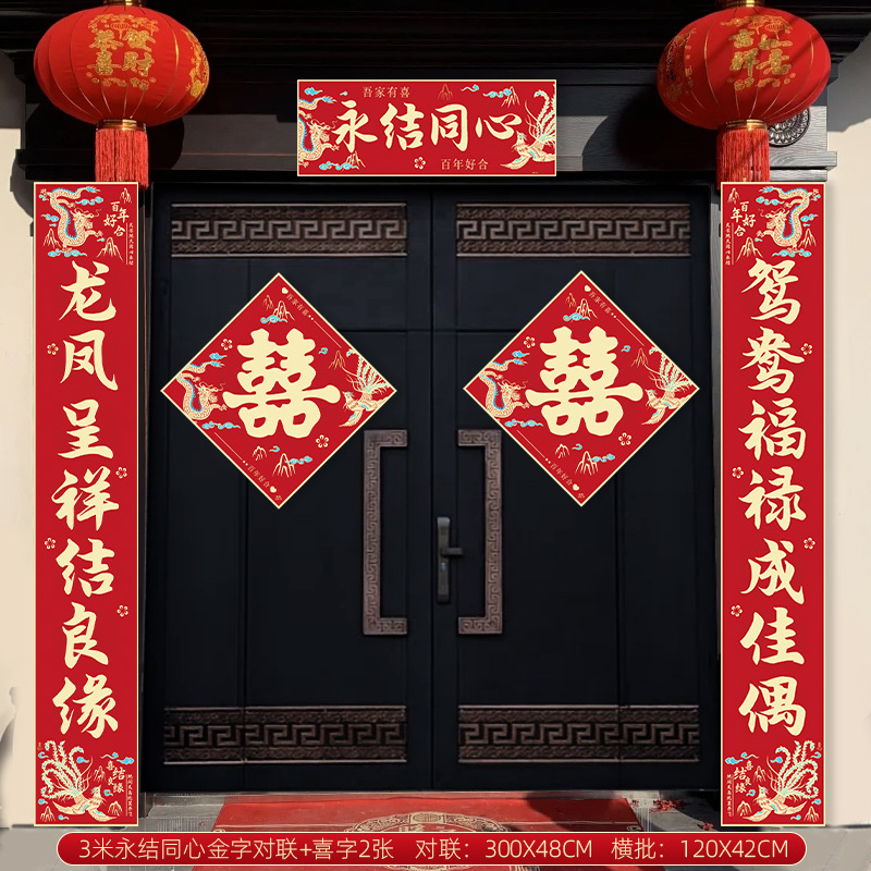 [3 meters] yongjie tongxin black word couplet +2 xi words
