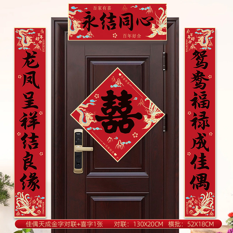 [1.3 m] yongjie tongxin gold word couplet + xi word 1 piece