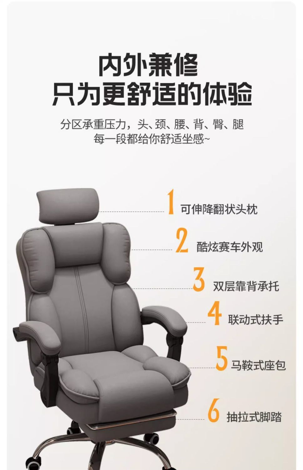 | gray cat's paw leather + 3d adjustable headrest + pedal + latex cushion | CN¥ 268.2 | 999 piece available |